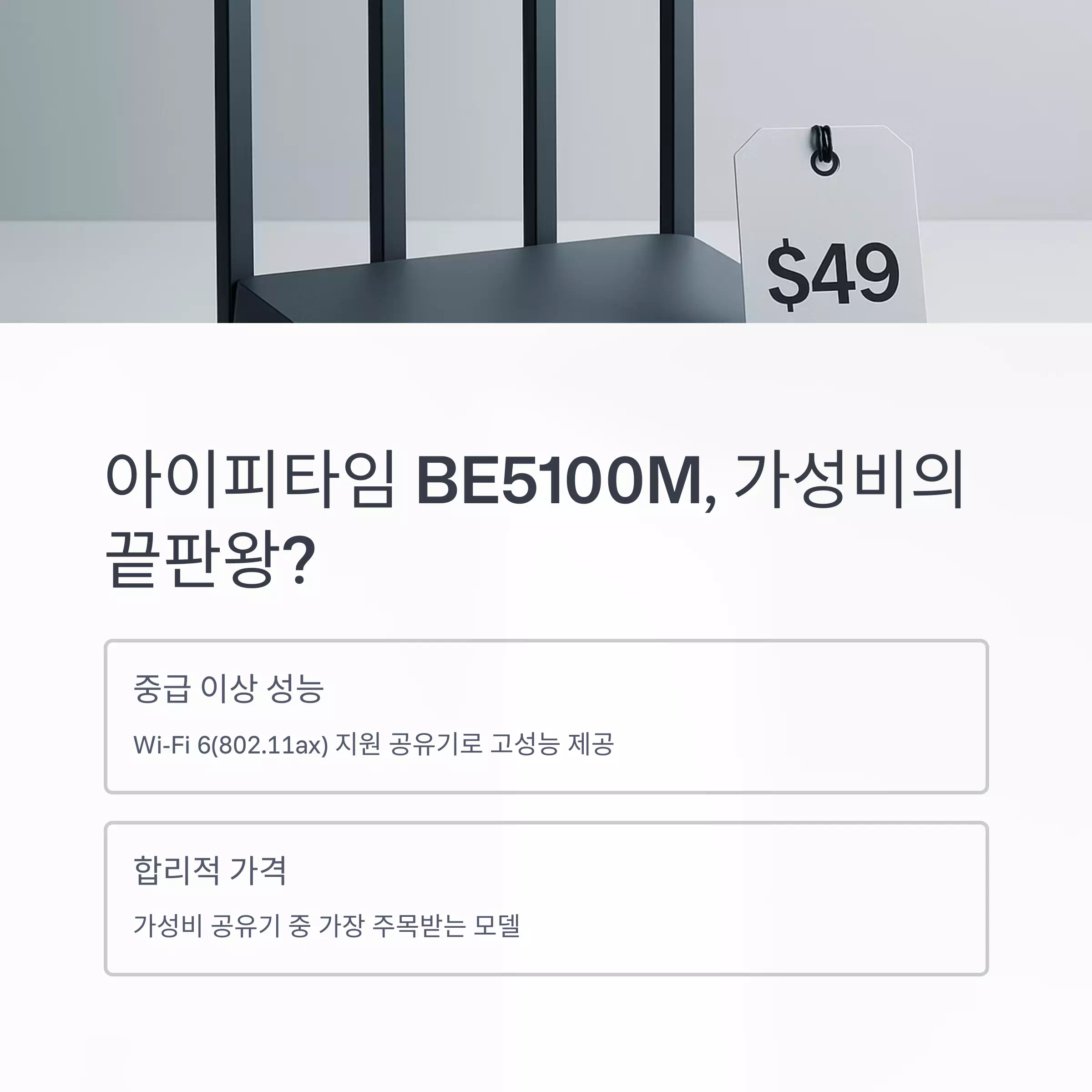 가성비를 고려하면 BE5100M은 Wi-Fi 6 지원 공유기