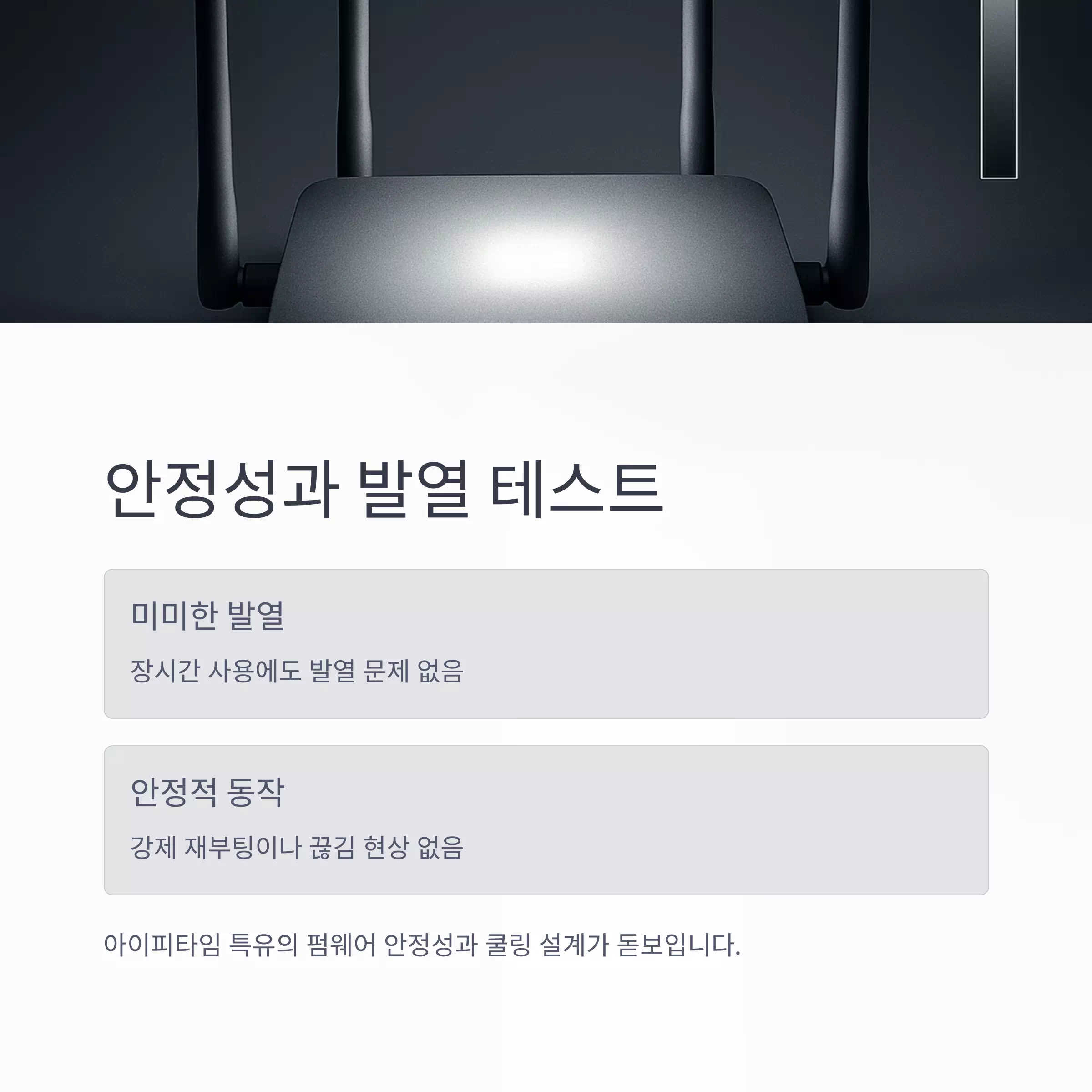 공유기 작동 중 강제 재부팅이나 끊김 현상 없이