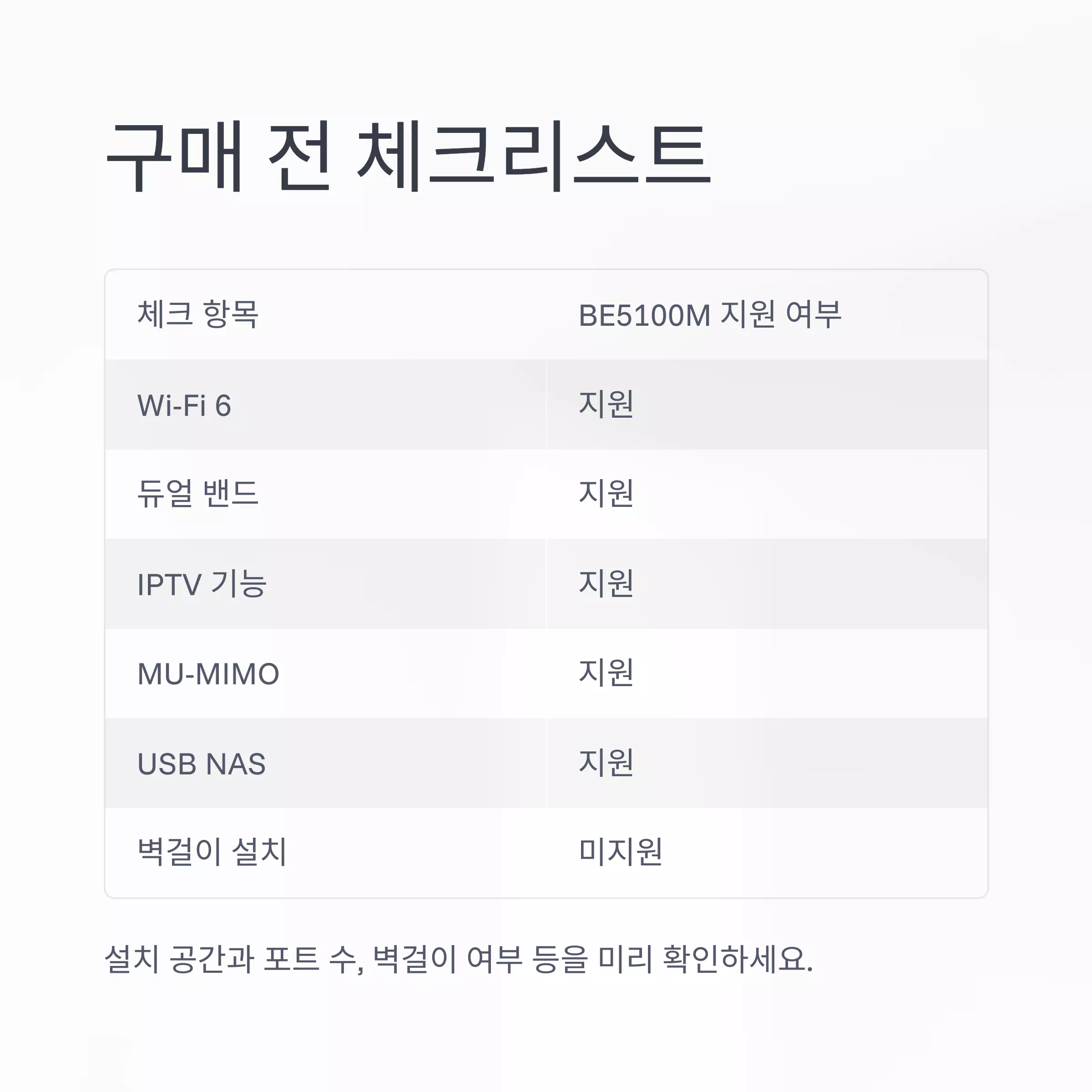 구입 전에 설치 공간과 포트 수, 벽걸이 여부 등을