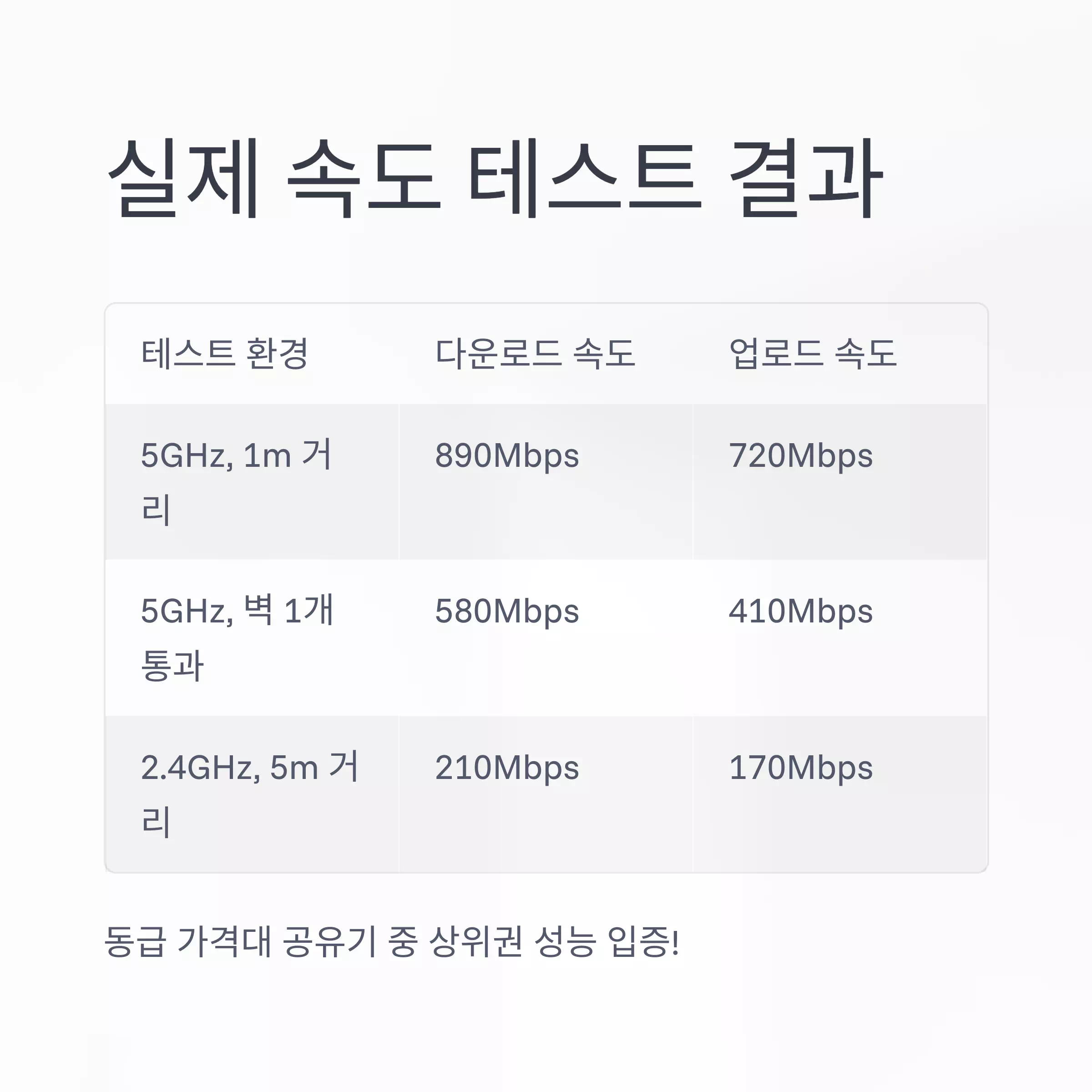 | 5GHz, 1m 거리 | 890Mbps | 720Mbps |