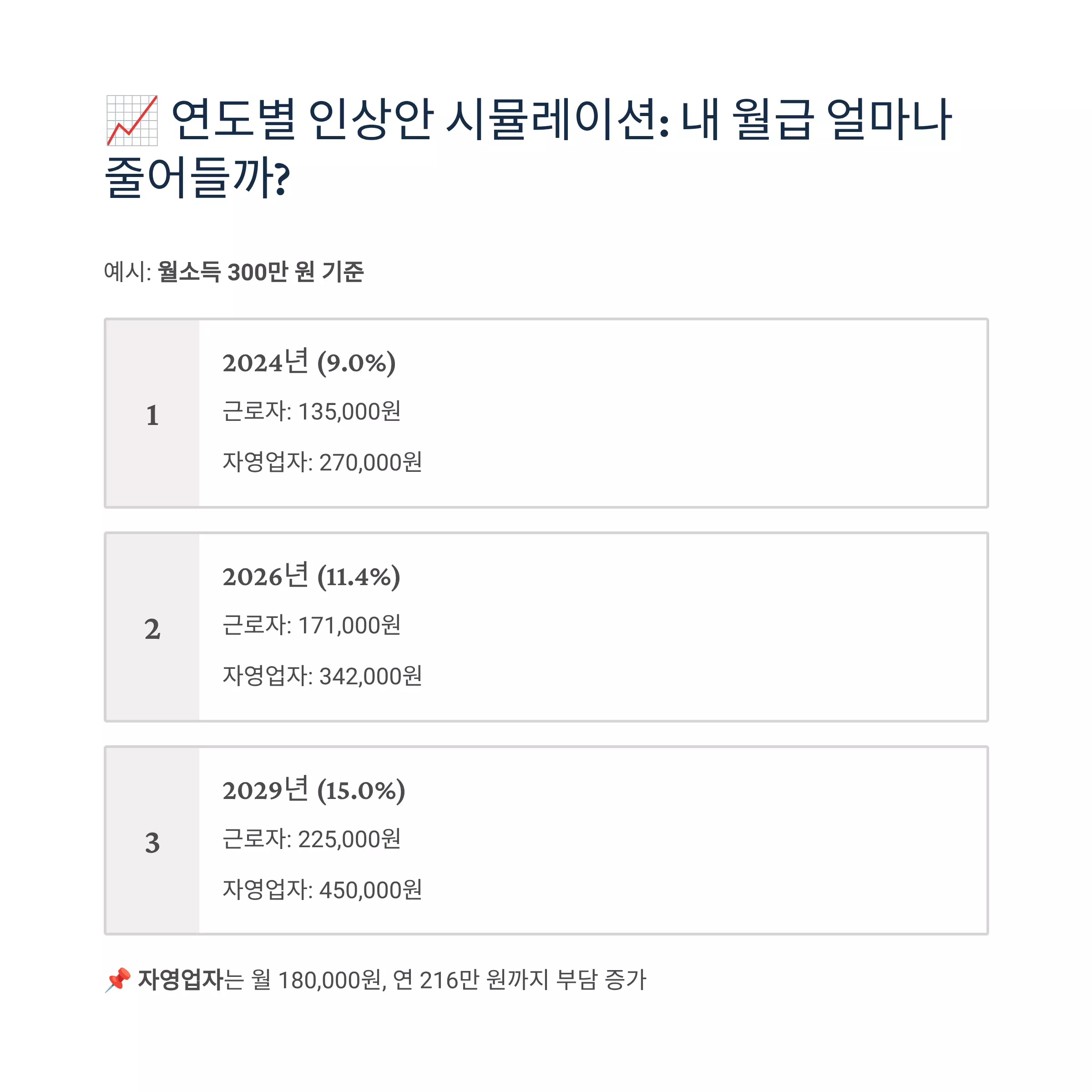 📌 자영업자는 월 180,000원, 연 216만 원까지 부담 증가