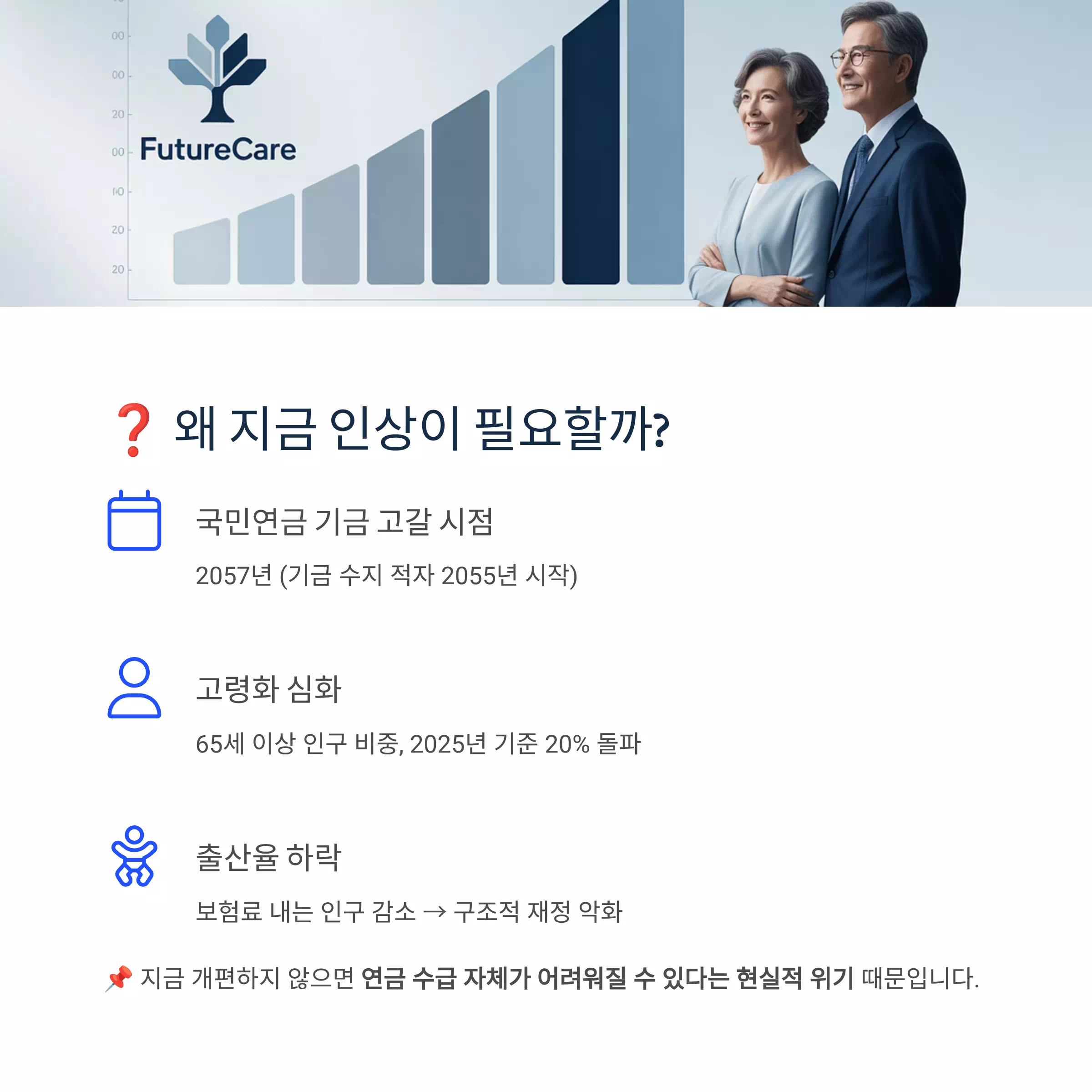 📌 지금 개편하지 않으면 연금 수급 자체가 어려워질 수 있다는 현실적 위기 때문입니다.