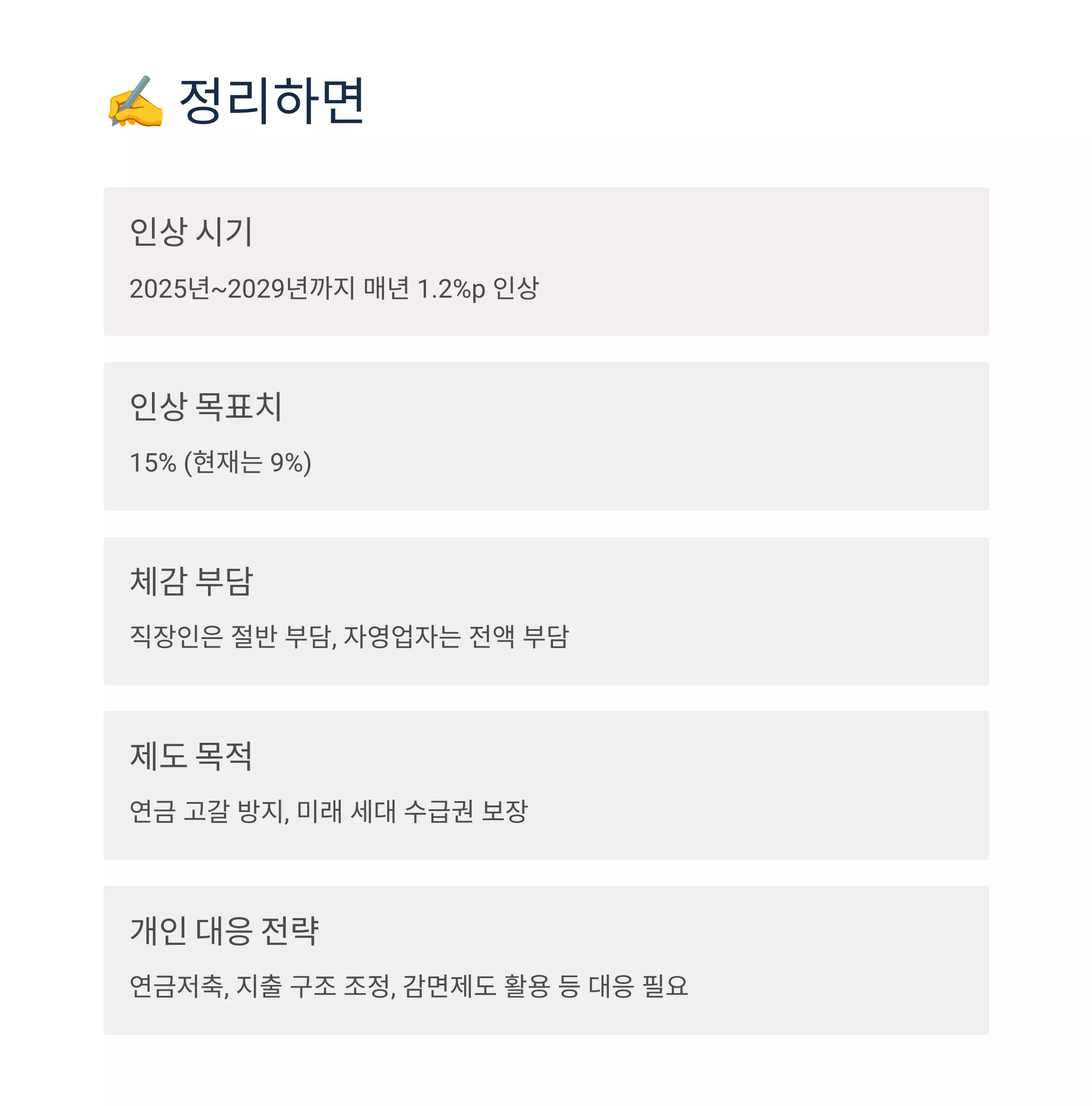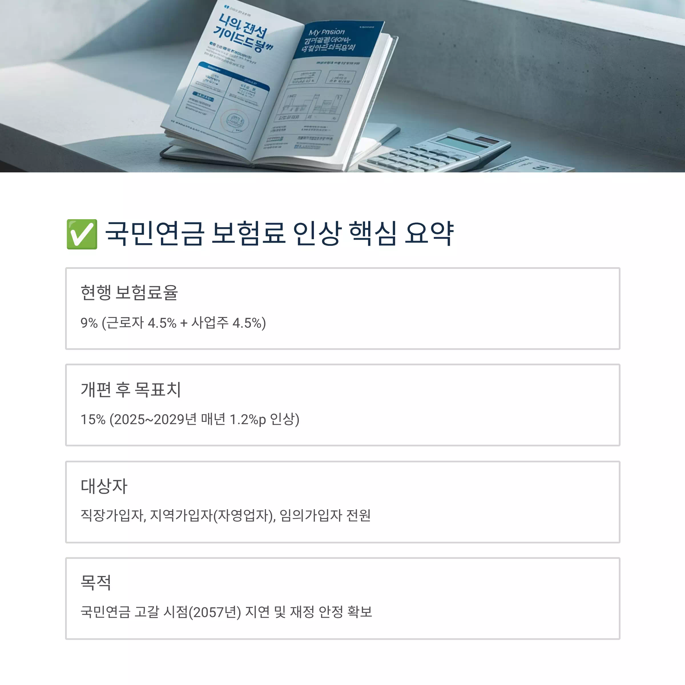 ✅ 국민연금 보험료 인상 핵심 요약