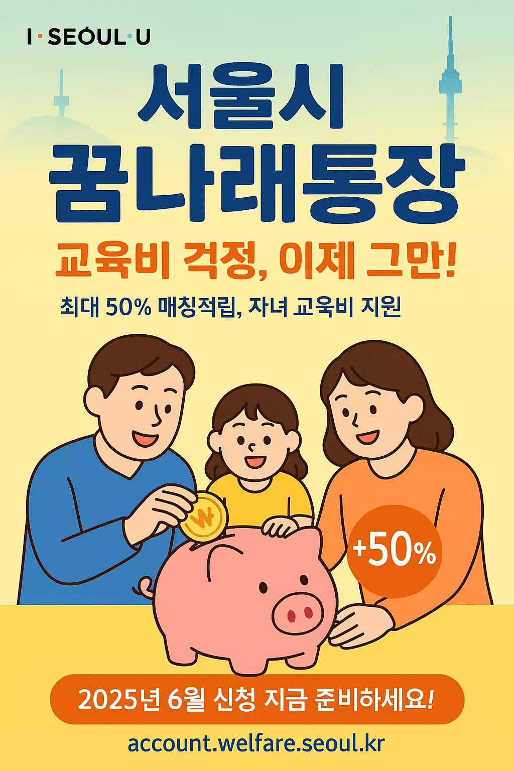 더 자세한 정보는 서울시 자산형성지원사업 공식 홈페이지(https://account.welfare.seoul.kr)에서 확인하실 수 있습니다. 많은 가정의 현명한 선택이 아이들의 밝은 미래로 이어지기를 기대합니다.