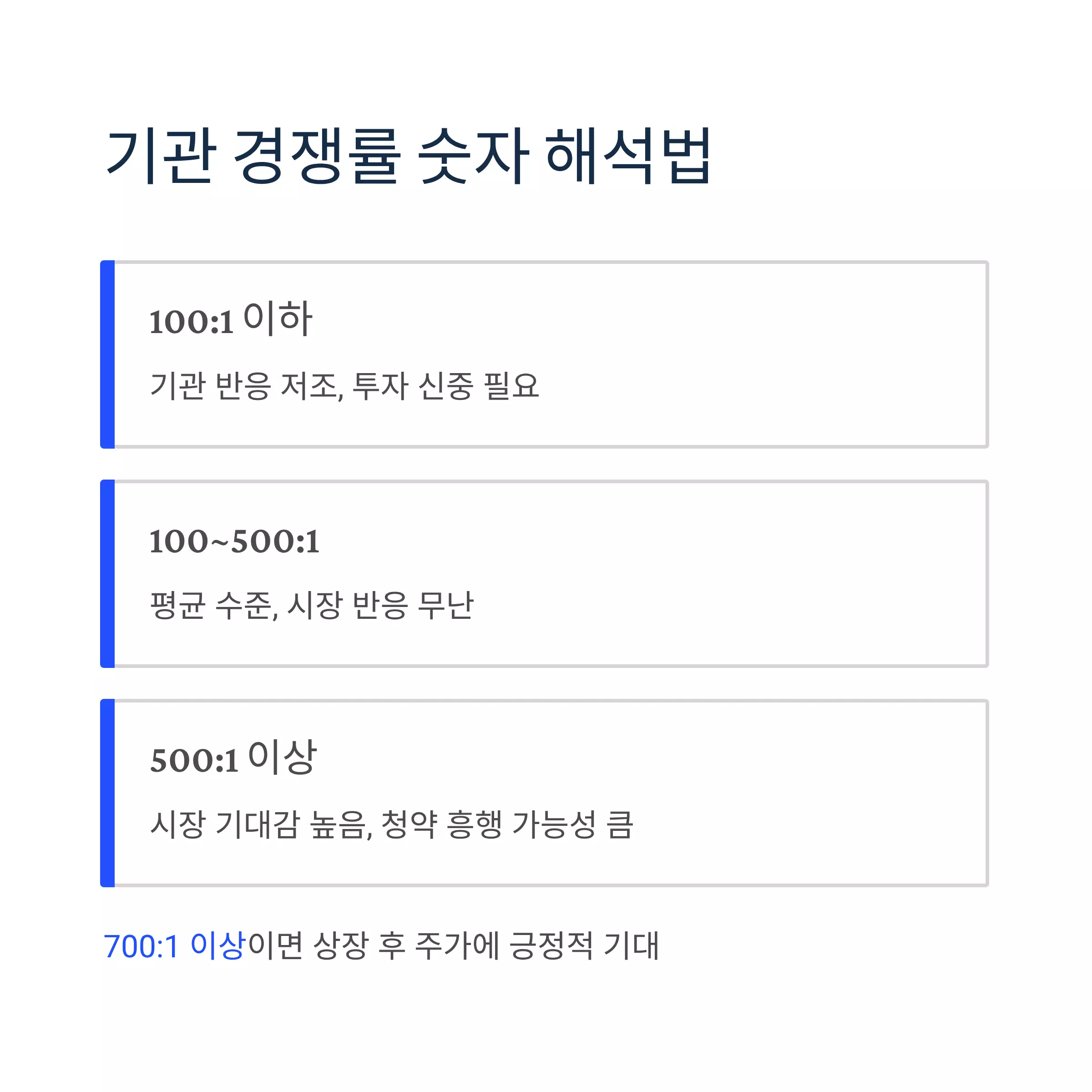 | 500:1 이상 | 시장 기대감 높음, 청약 흥행 가능성 큼 |