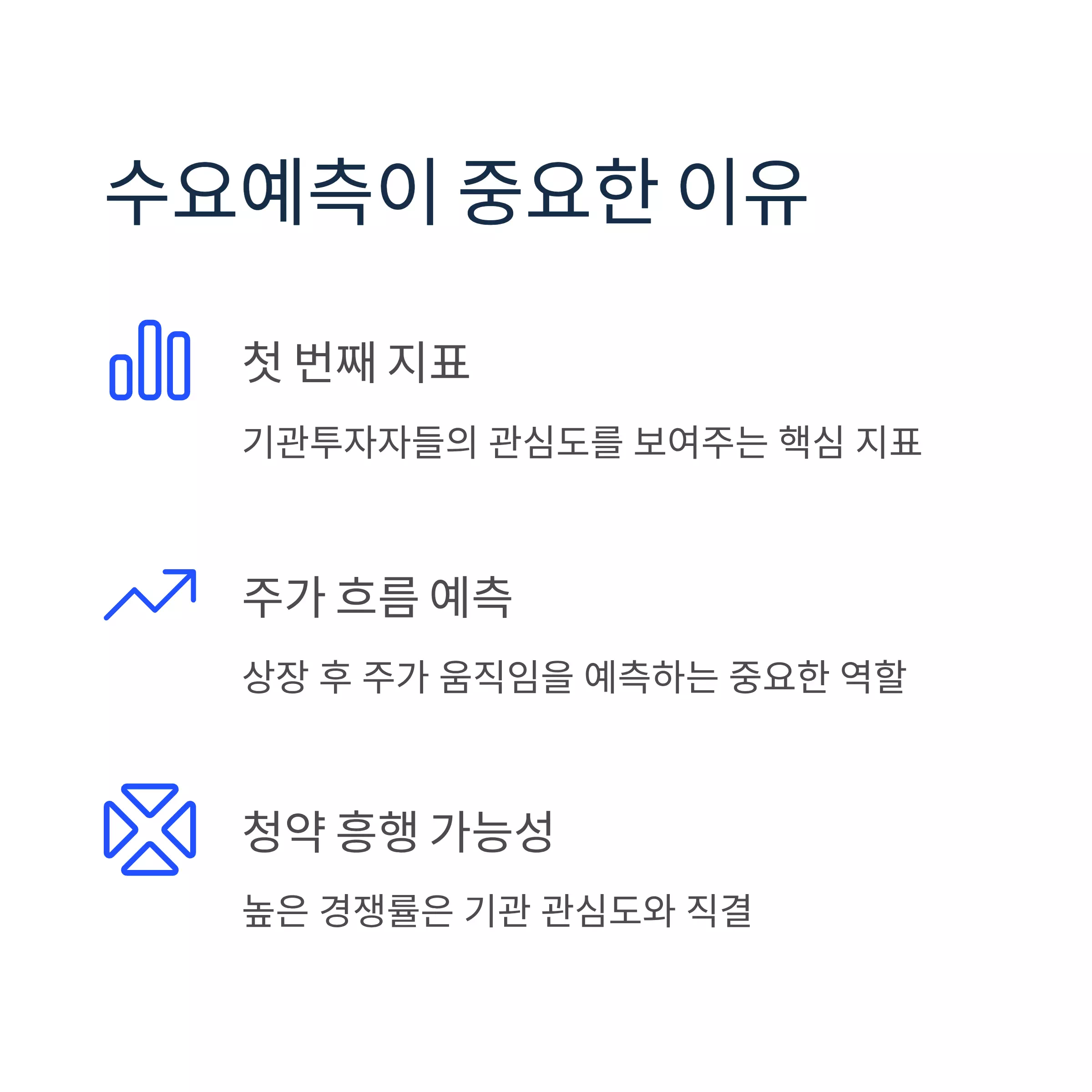 수요예측은 기관투자자들이 얼마나 이 기업에 관심을 갖고 있는지를 보여주는 첫 번째 지표입니다.