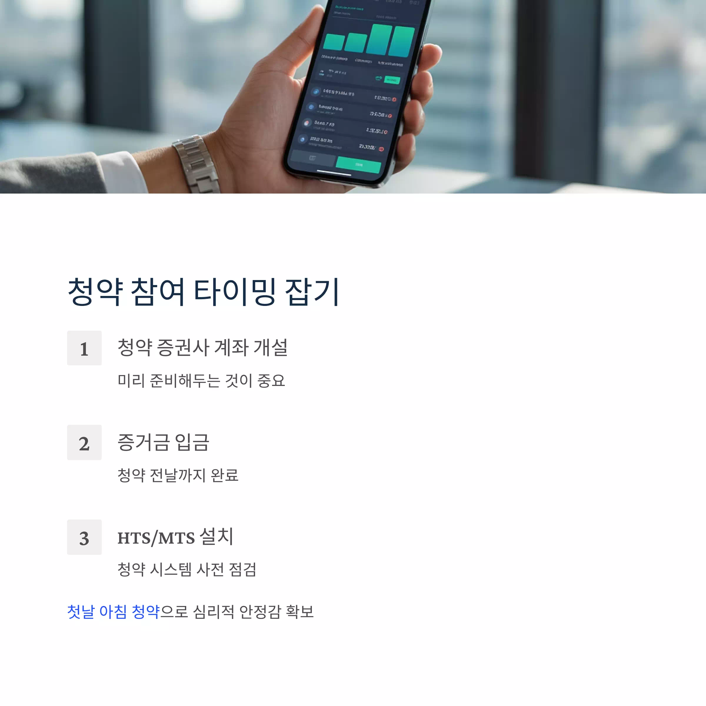 마지막 날까지 기다리지 말고, 첫날 아침 청약을 완료하는 것이 심리적으로도 안정감을 줄 수 있습니다.
