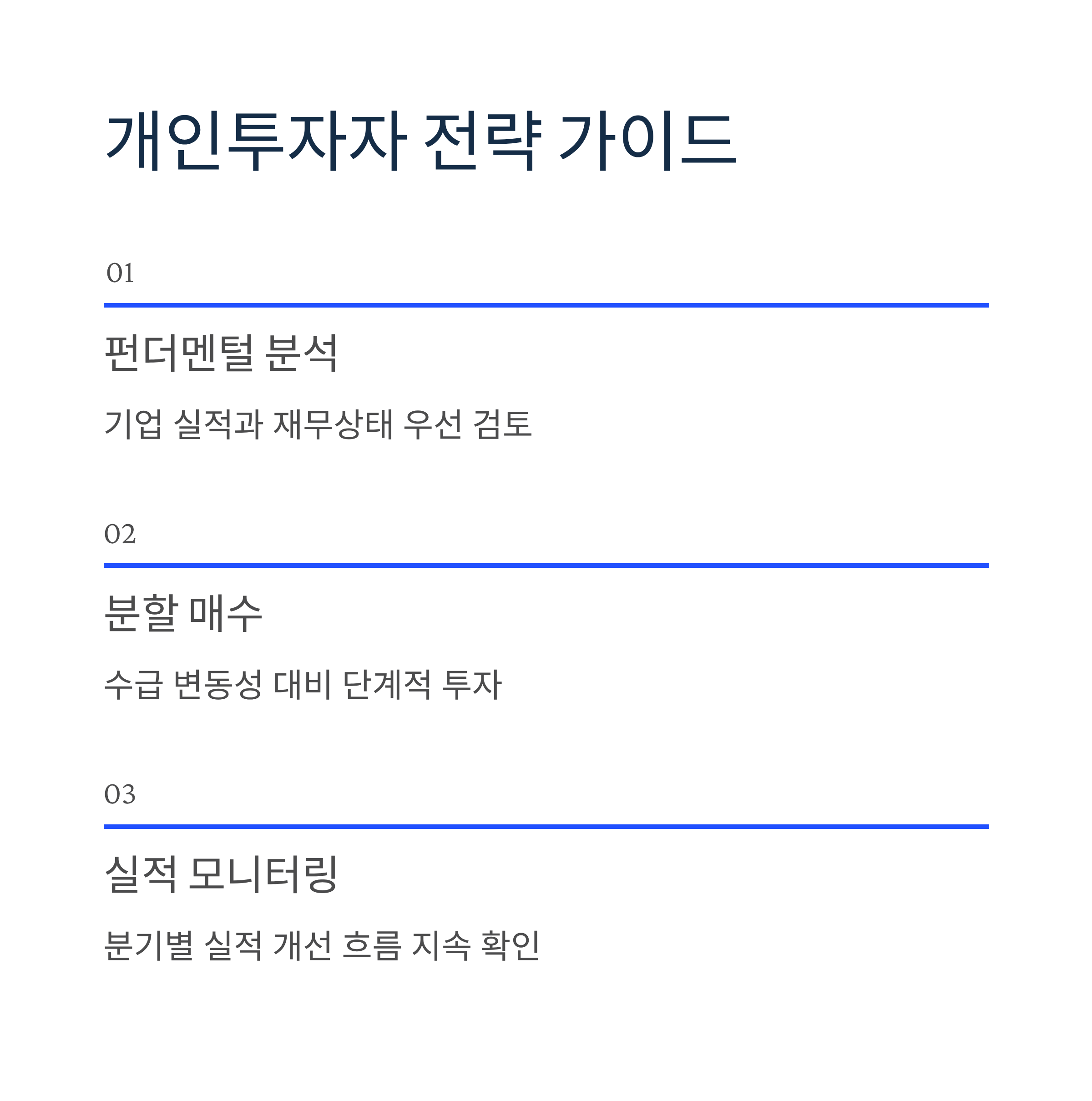 개인 투자자는 수급에만 기대기보다는, 기업 펀더멘털과 실적 개선 흐름을 기반으로 분할 매수하는 전략이 유효합니다.