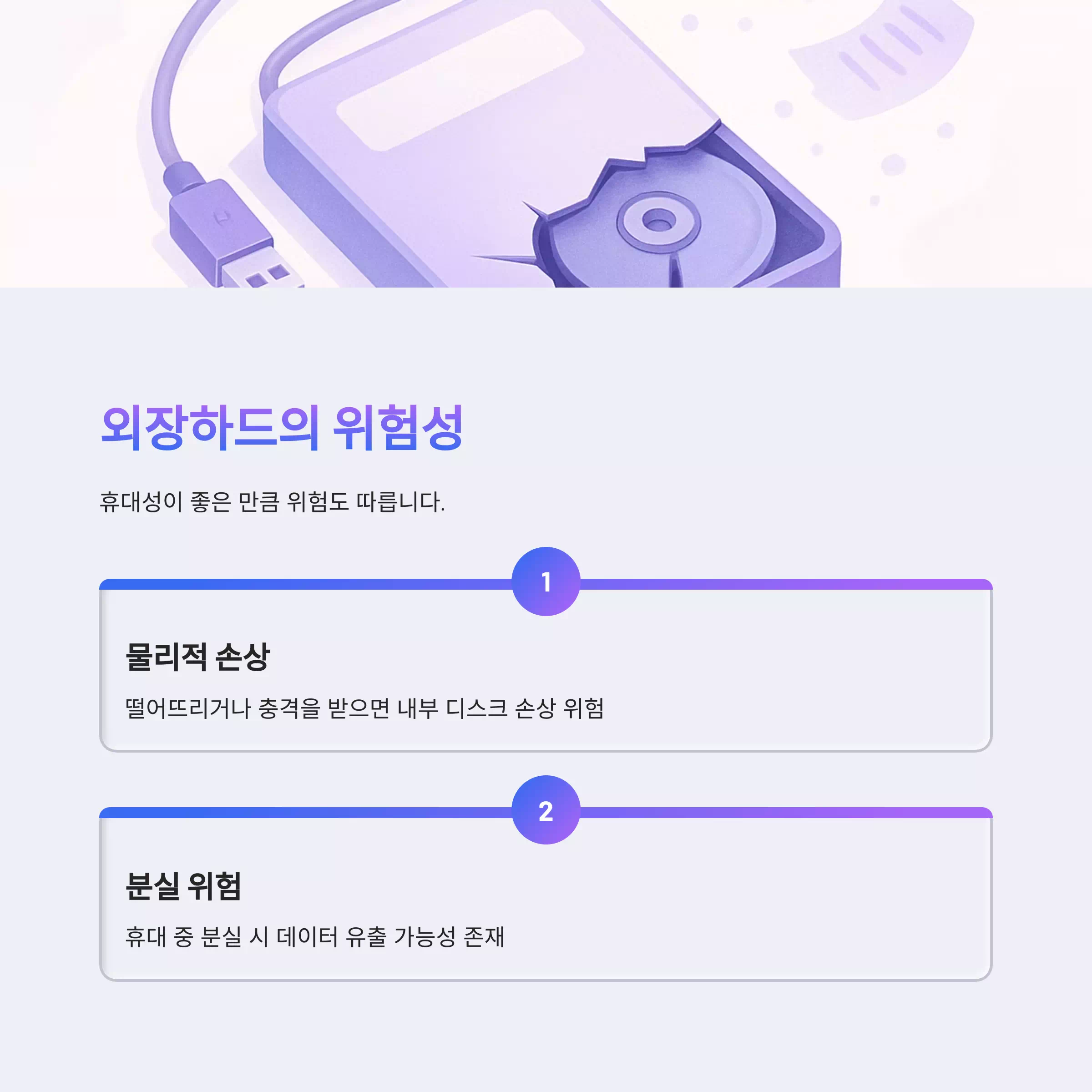 | 보안/안정성 | RAID 구성, 사용자 인증 등 우수 | 떨어지면 손상 위험, 보안 취약 |