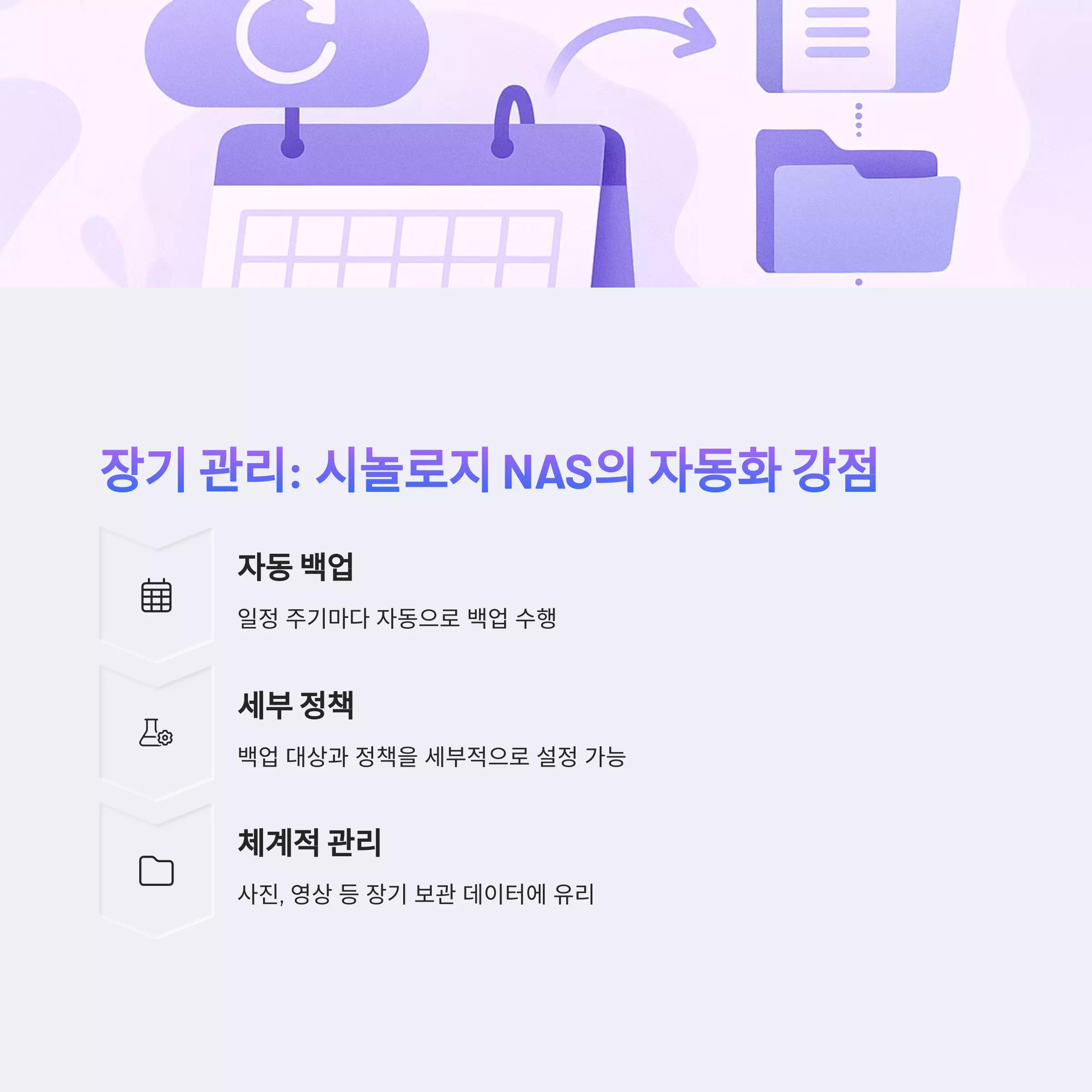 시놀로지 NAS는 자동 백업 기능으로 장기 관리에 유리합니다