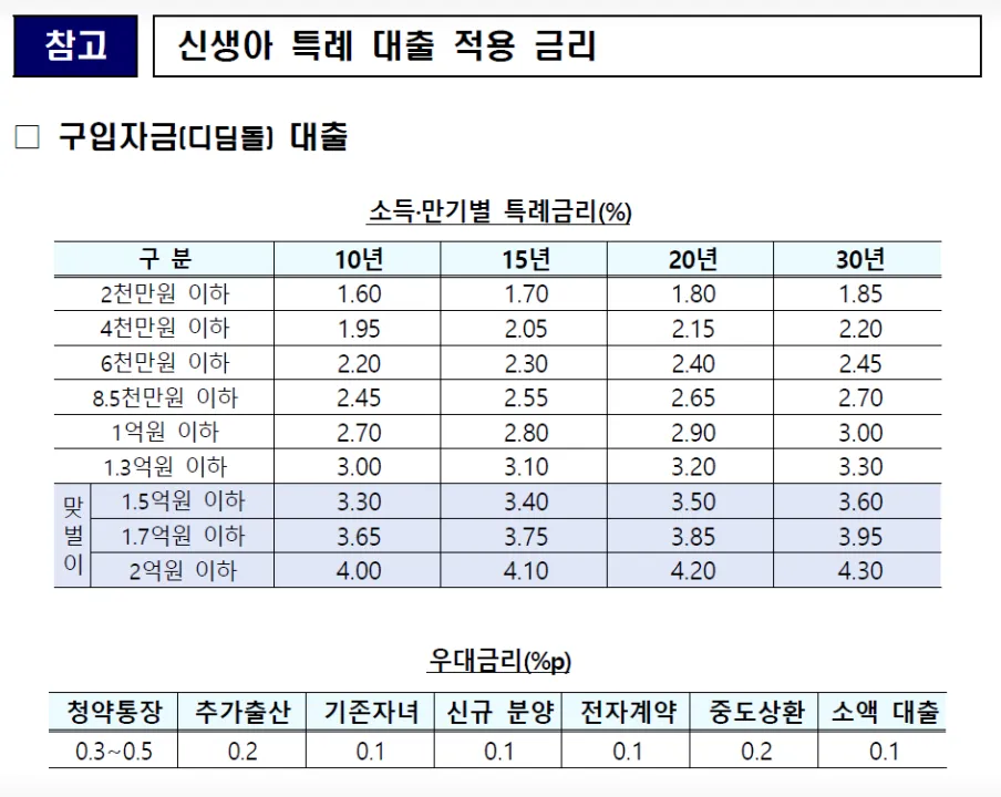 - 신생아 출산 가구: 최대 0.6% 금리 인하