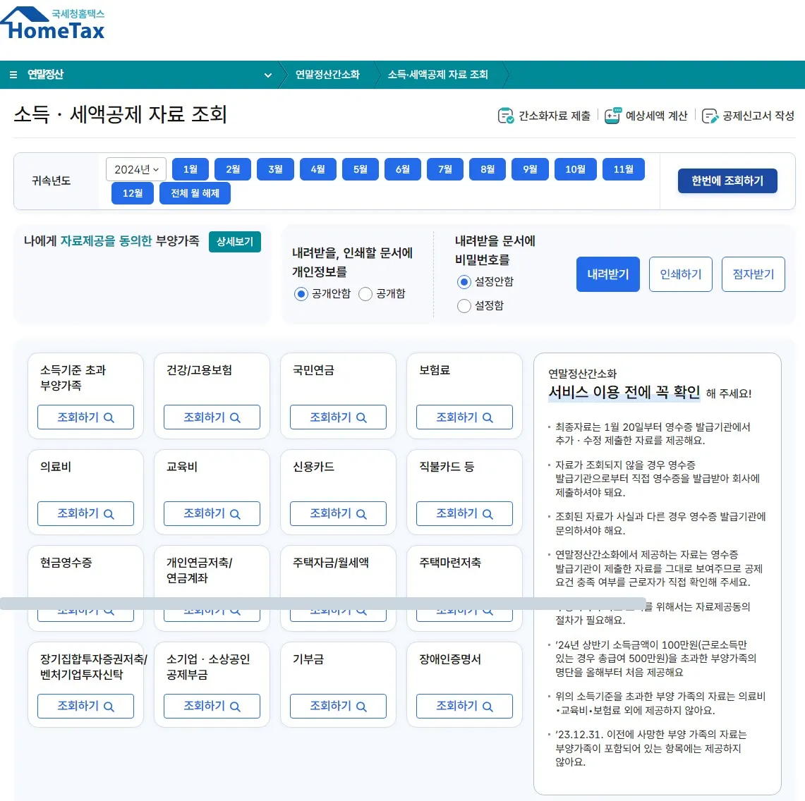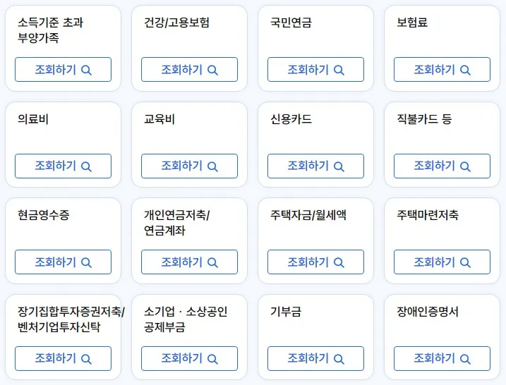 - 의료비, 교육비, 기부금 등 공제 항목 조회