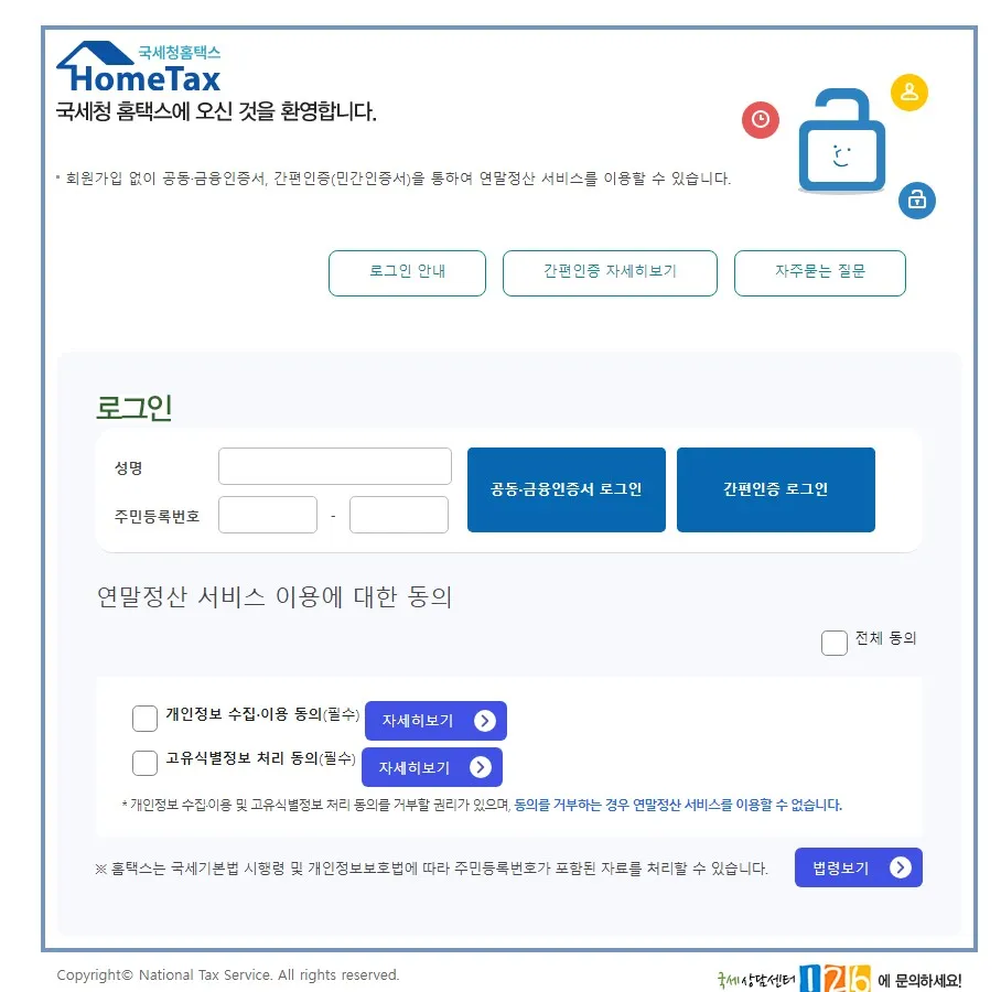 - 국세청 홈택스에 접속합니다. (홈택스 바로가기)
