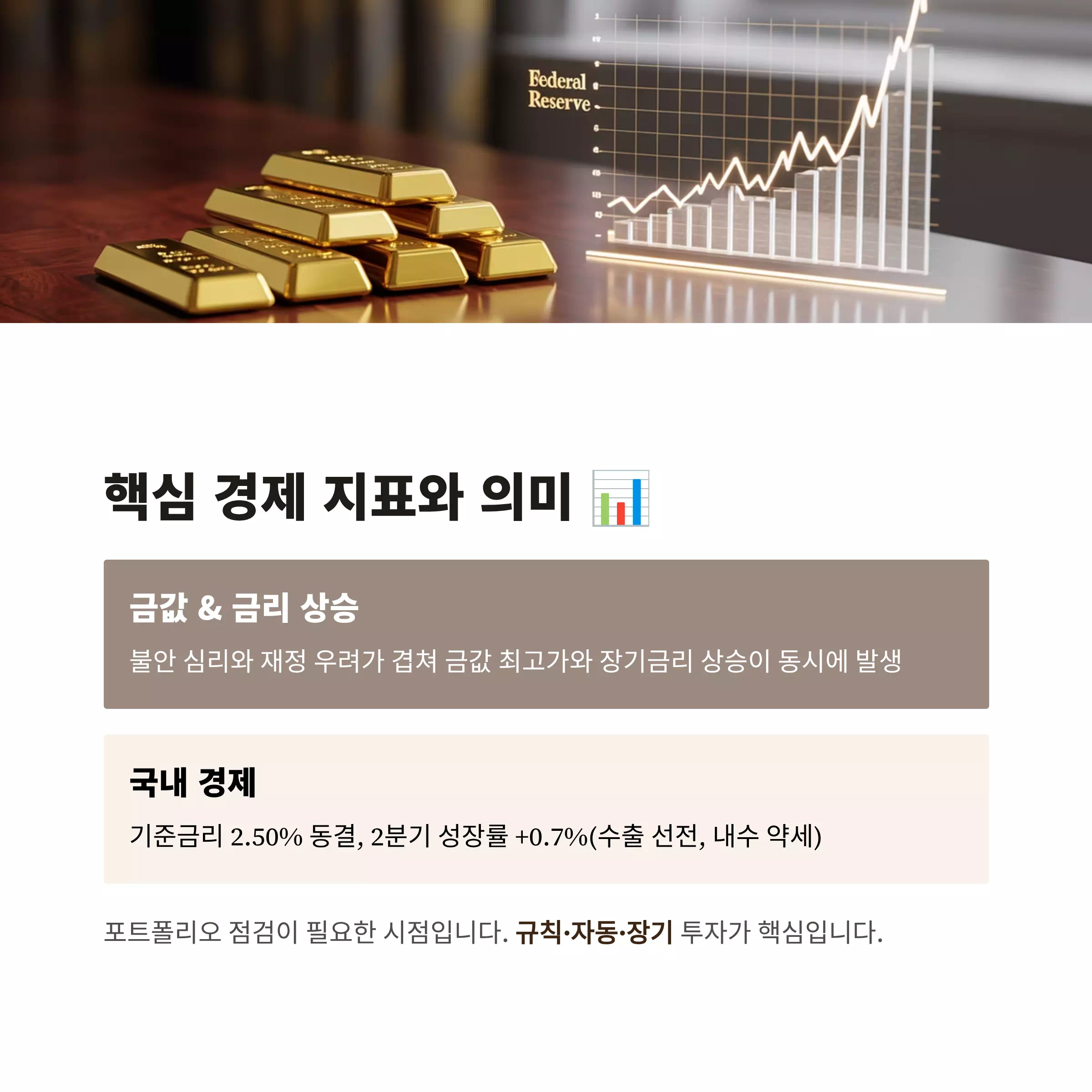 한 줄 요약: 금값은 최고가권, 장기금리는 상승세, 기준금리는 동결. 숫자에 쫄지 말고 생활로 연결하면 오늘부터 뉴스가 돈 관리 도구가 됩니다.