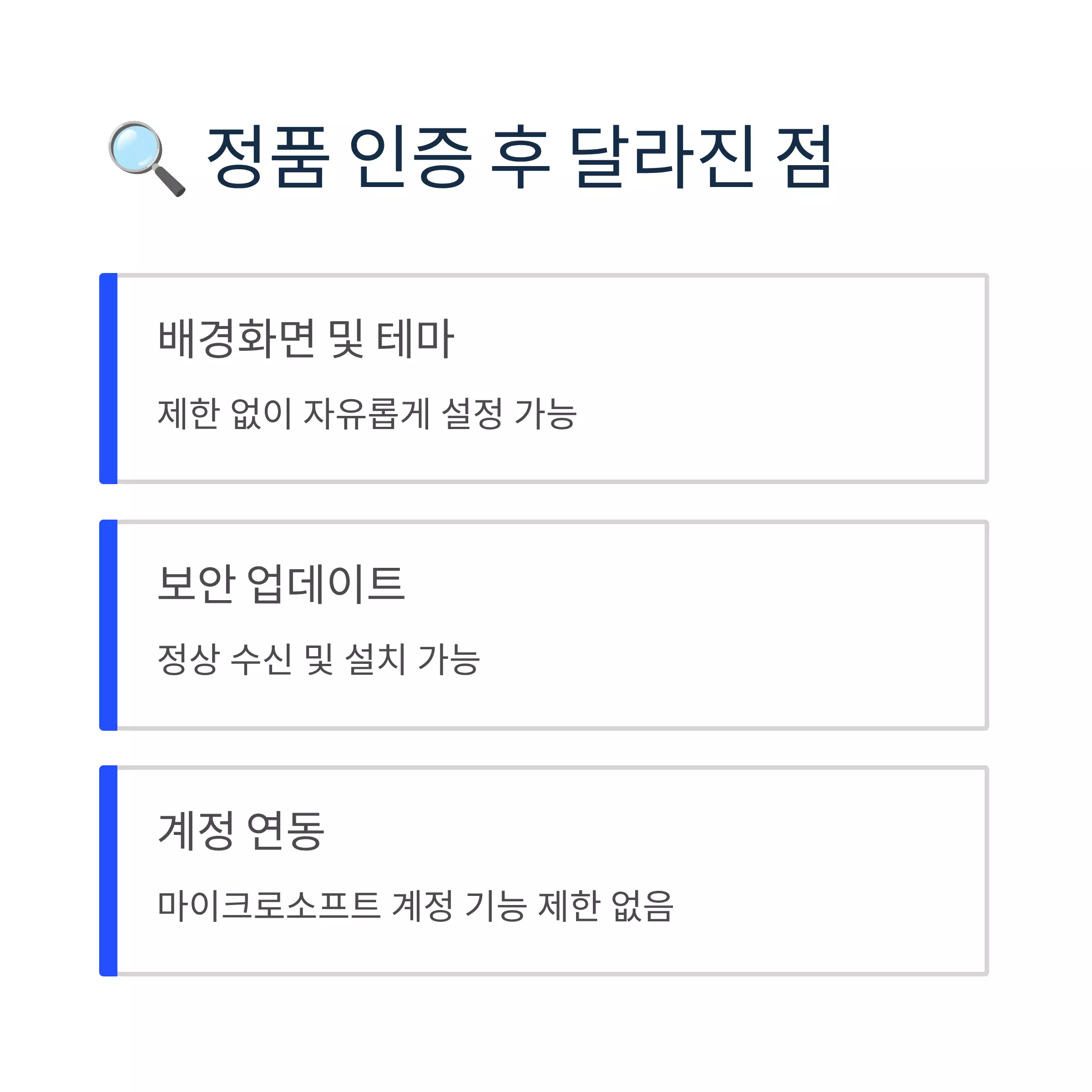 📌 정품 인증을 하니 안정성과 기능 사용 면에서 확실히 차이를 체감할 수 있었습니다.