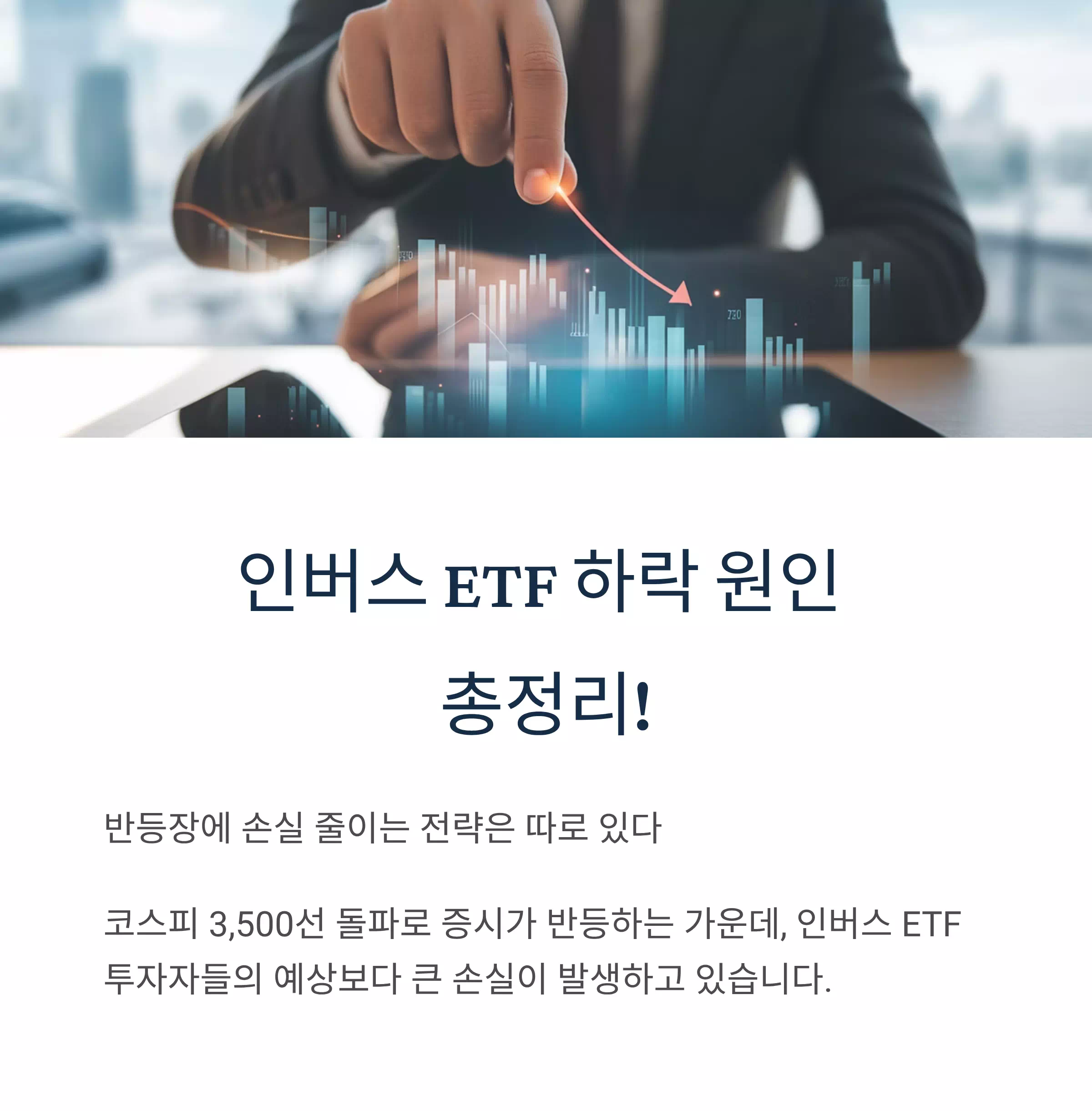 코스피가 3,500선을 돌파하며 증시가 반등하는 국면에서, 인버스 ETF 투자자들은 예상보다 큰 손실을 경험하고 있습니다. 이번 글에서는 인버스 ETF가 급락하는 구조적 이유와 반등장에서 손실을 줄이는 전략을 정리합니다.