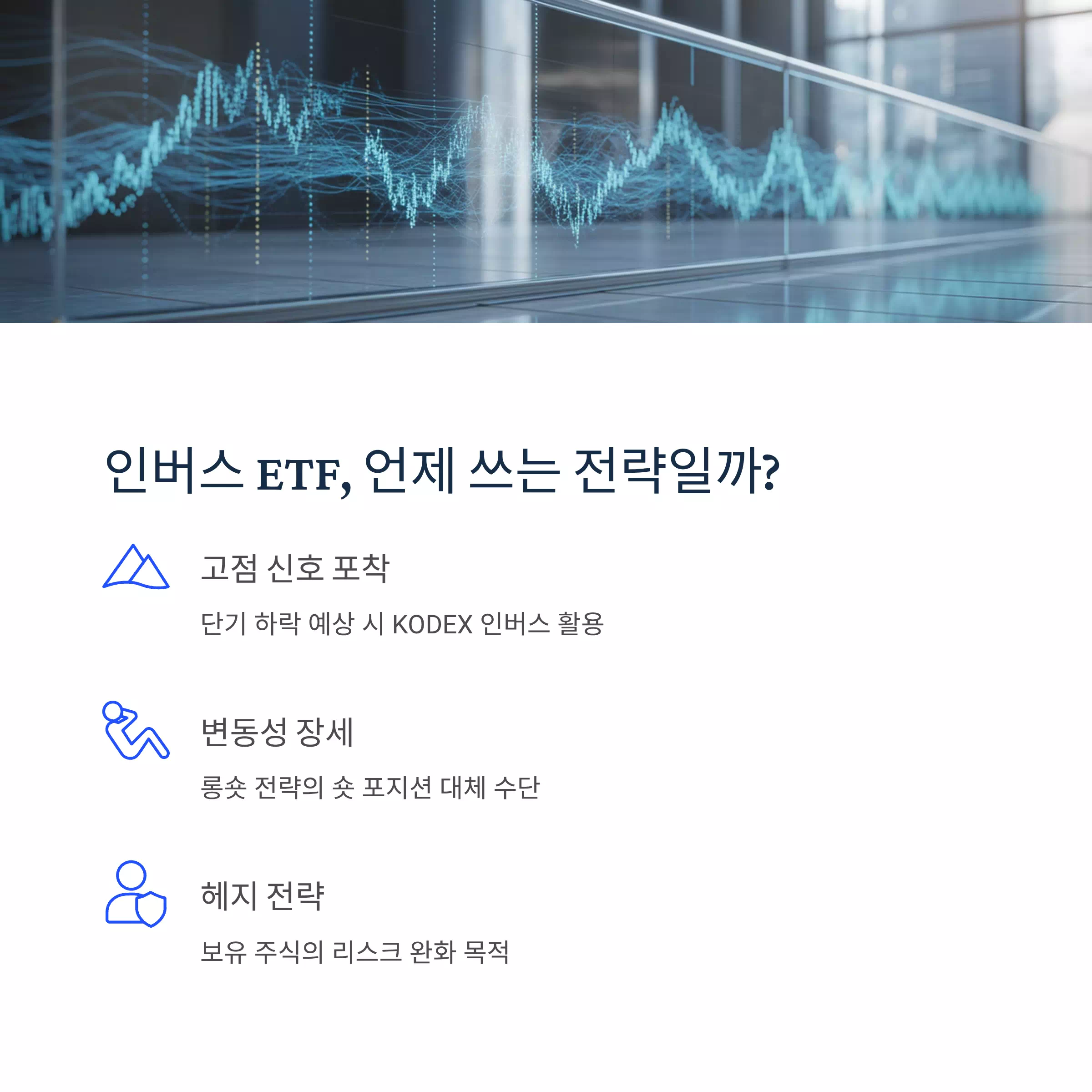 | 고점 신호 포착 시 | 단기 하락 예상 → KODEX 인버스 |