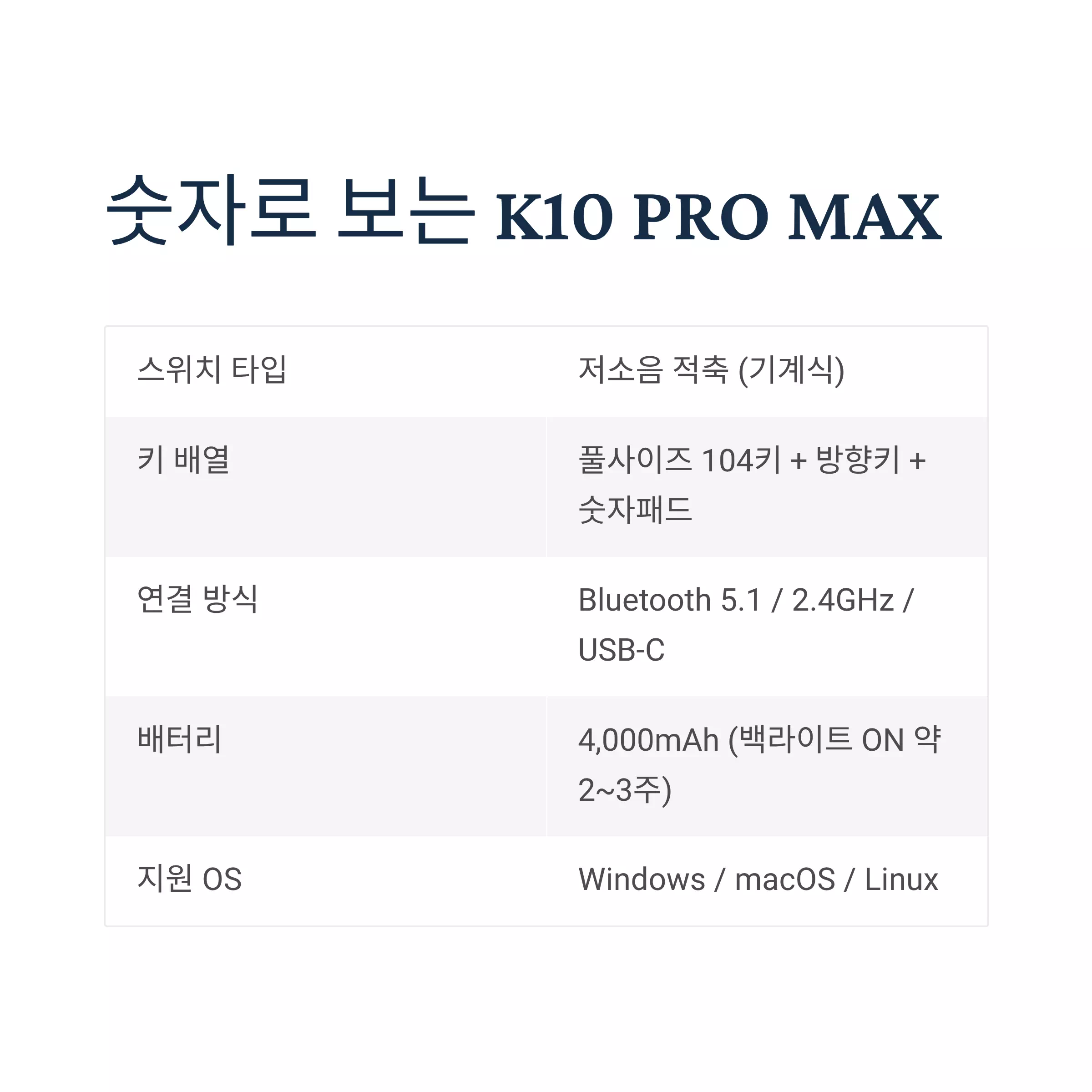 🧰 5. 스펙 요약 – 숫자로 보는 K10 PRO MAX