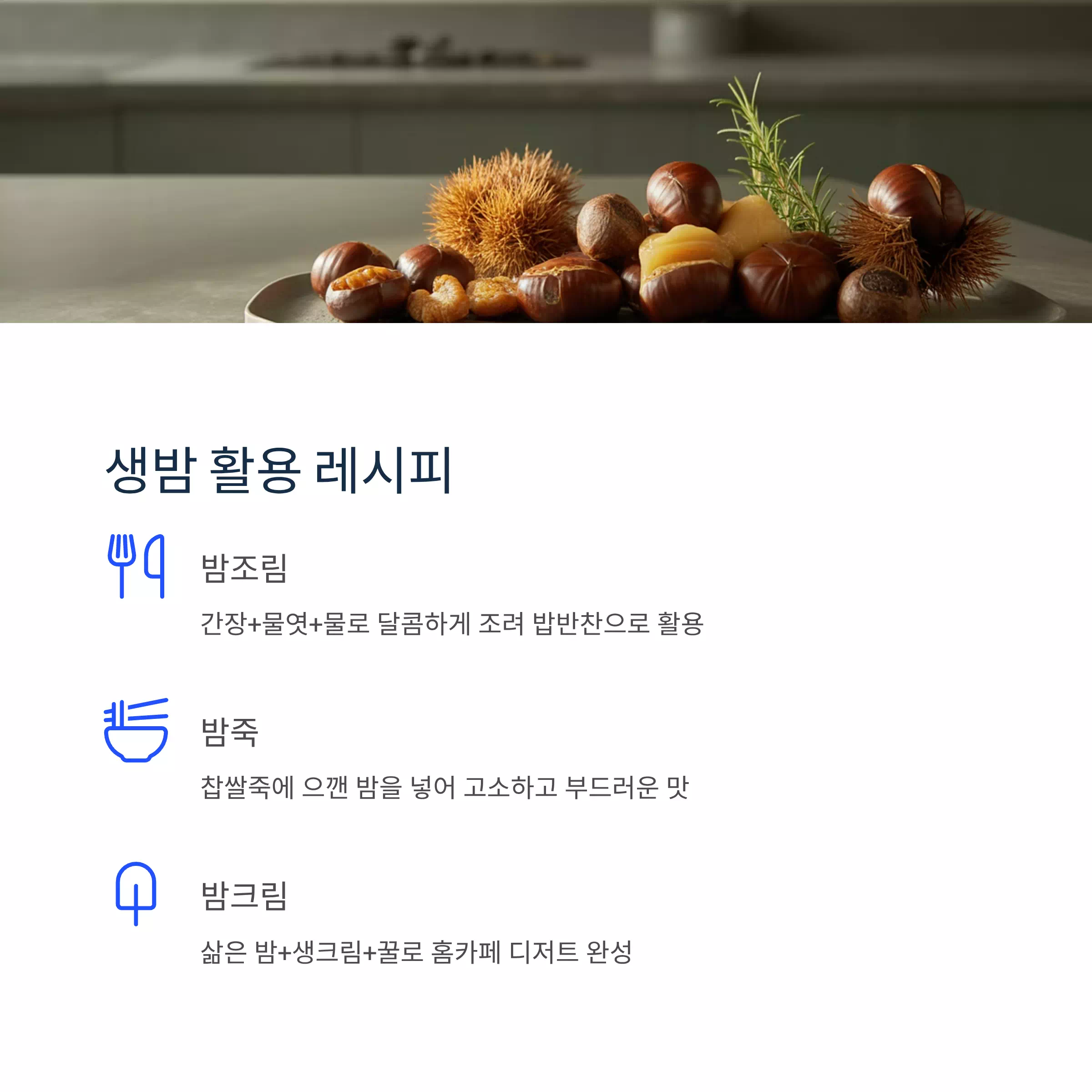 이번 글에서는 제철 생밤을 오래도록 신선하게 보관하는 법과 오래 두고 맛있게 먹는 다양한 활용법까지 모두 정리해드립니다.
