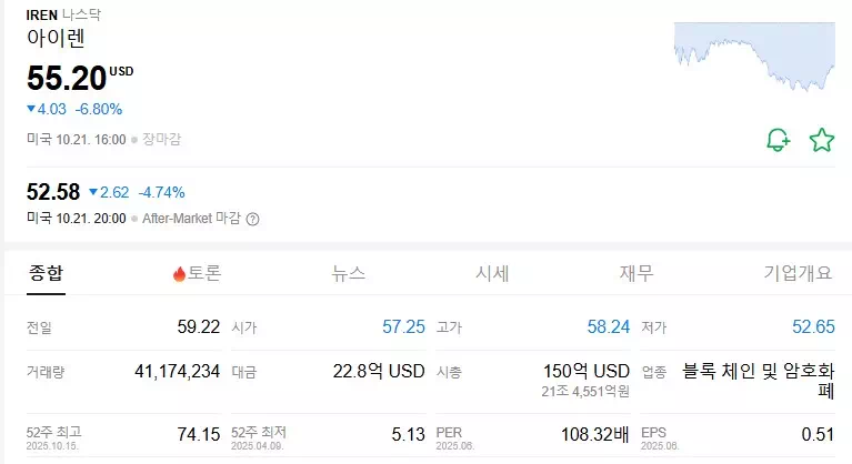 https://www.btcc.com/ko-KR/media/crypto-finance/iren-stock-ai-cloud-analysis - 아이렌 실시간 주가 및 티커 정보: