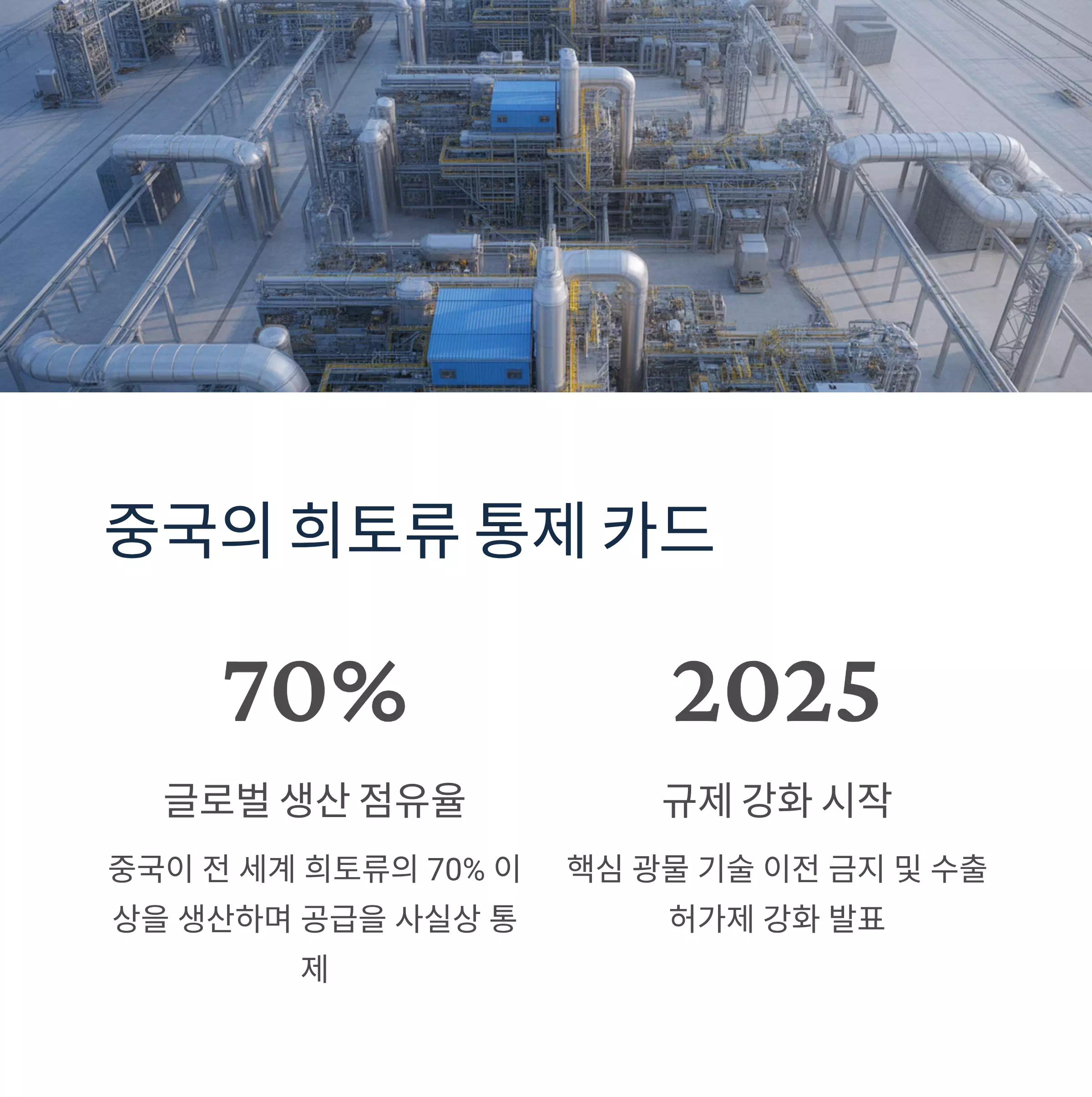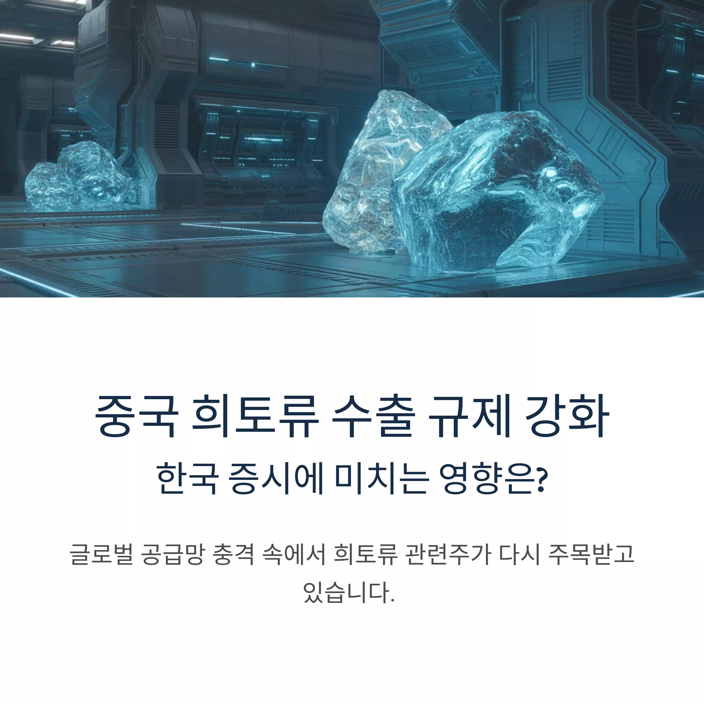2025년 하반기, 중국의 희토류 수출 규제가 다시 한번 강화되면서 세계 시장이 요동치고 있습니다. 반도체, 전기차, 로봇 등 전략산업 전반에 영향을 미치는 희토류는 이제 단순한 자원이 아니라 경제 안보의 핵심 축으로 떠오르고 있는데요. 이번 글에서는 중국의 정책 변화가 한국 증시에 어떤 영향을 미치고 있는지, 그리고 관련 종목은 어떤 흐름을 보이고 있는지 집중 분석해 봅니다.