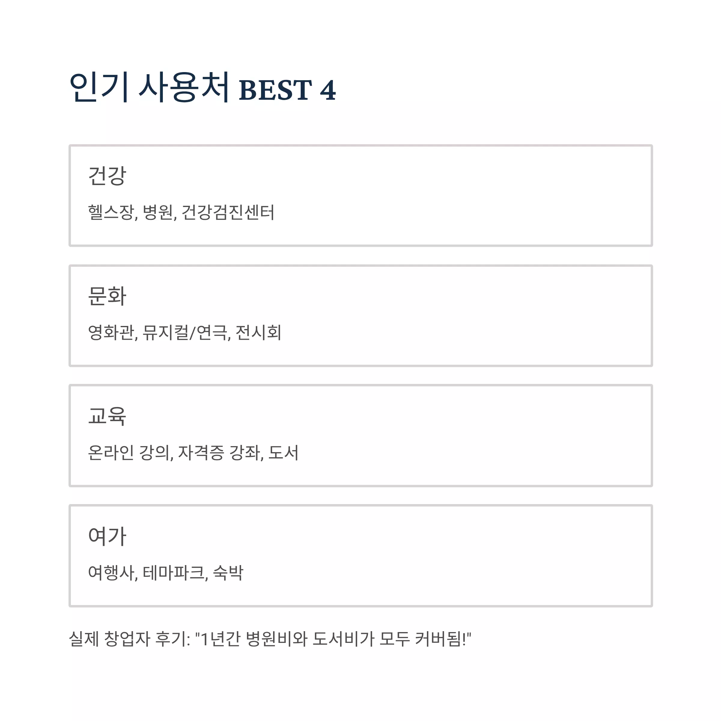 👉 실제 창업자 후기: “1년간 병원비와 도서비가 모두 커버됨!”