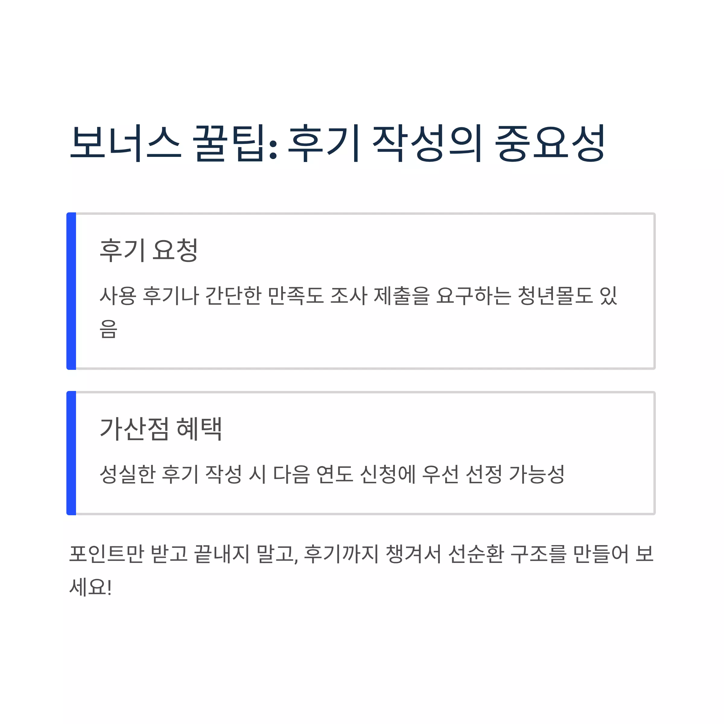 후기를 성실히 남기면 다음 연도 신청 시 가산점 또는 우선 선정 대상이 되는 경우도 있습니다.