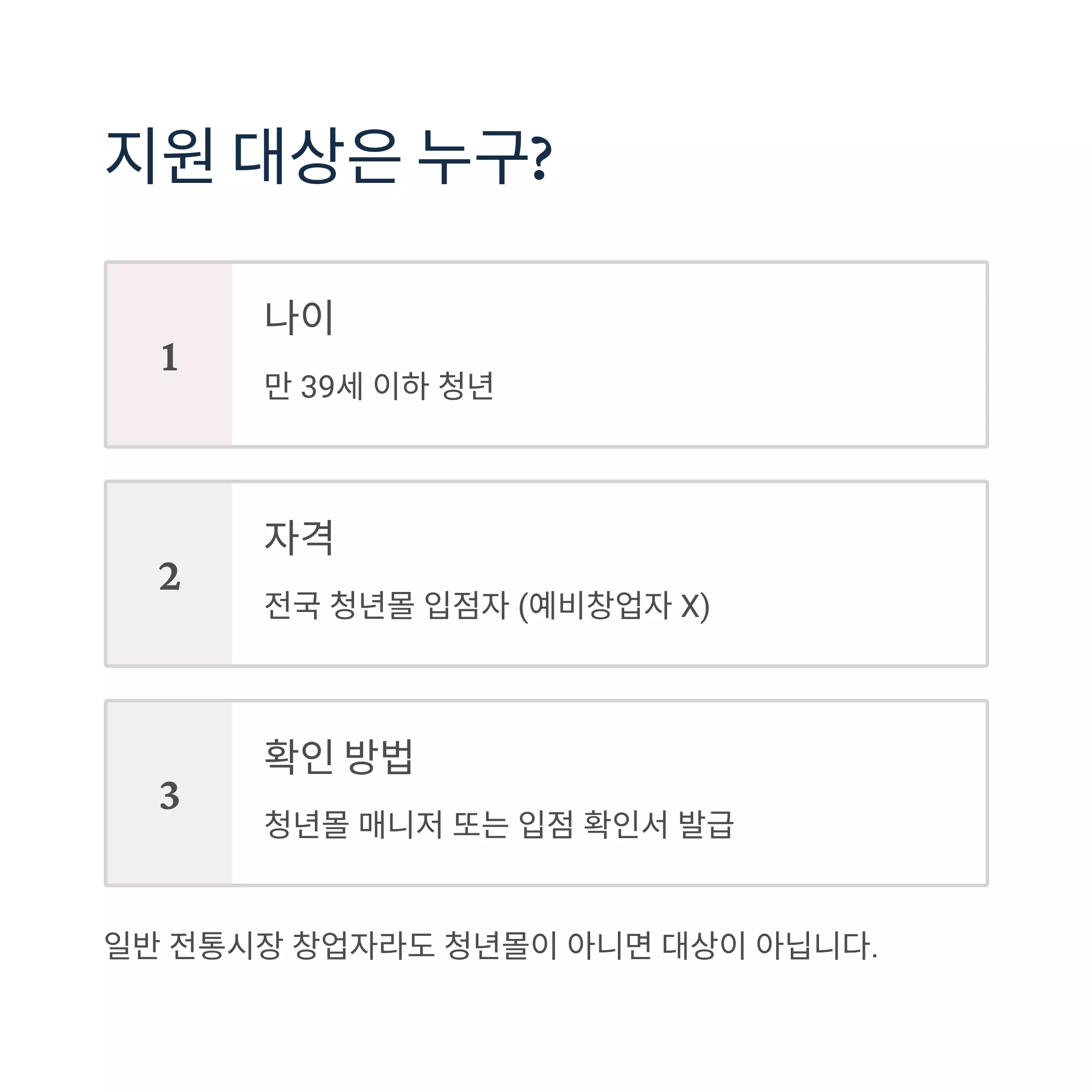 🧾 누구나 받을 수 있을까? 지원 대상은 ‘청년몰 입점자’