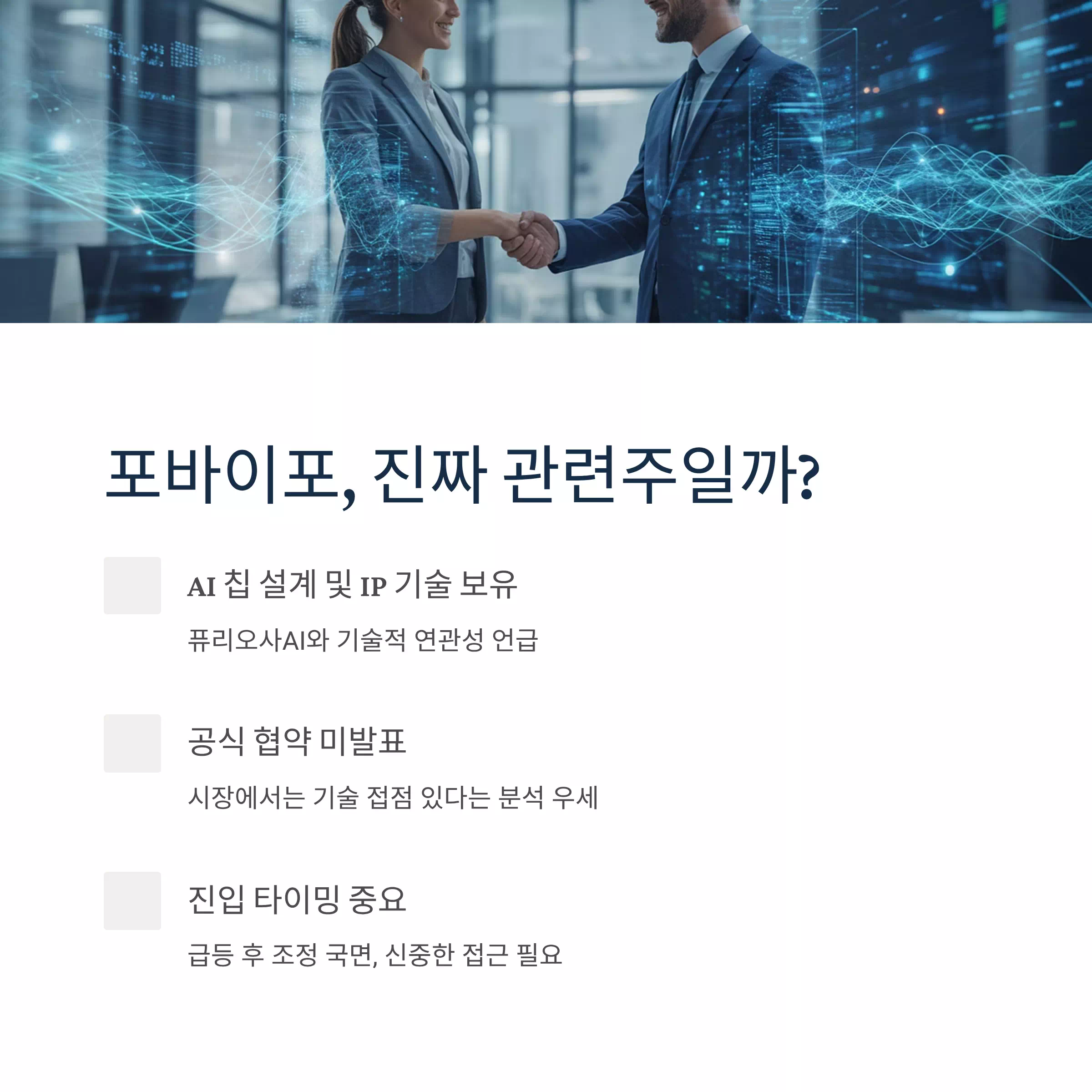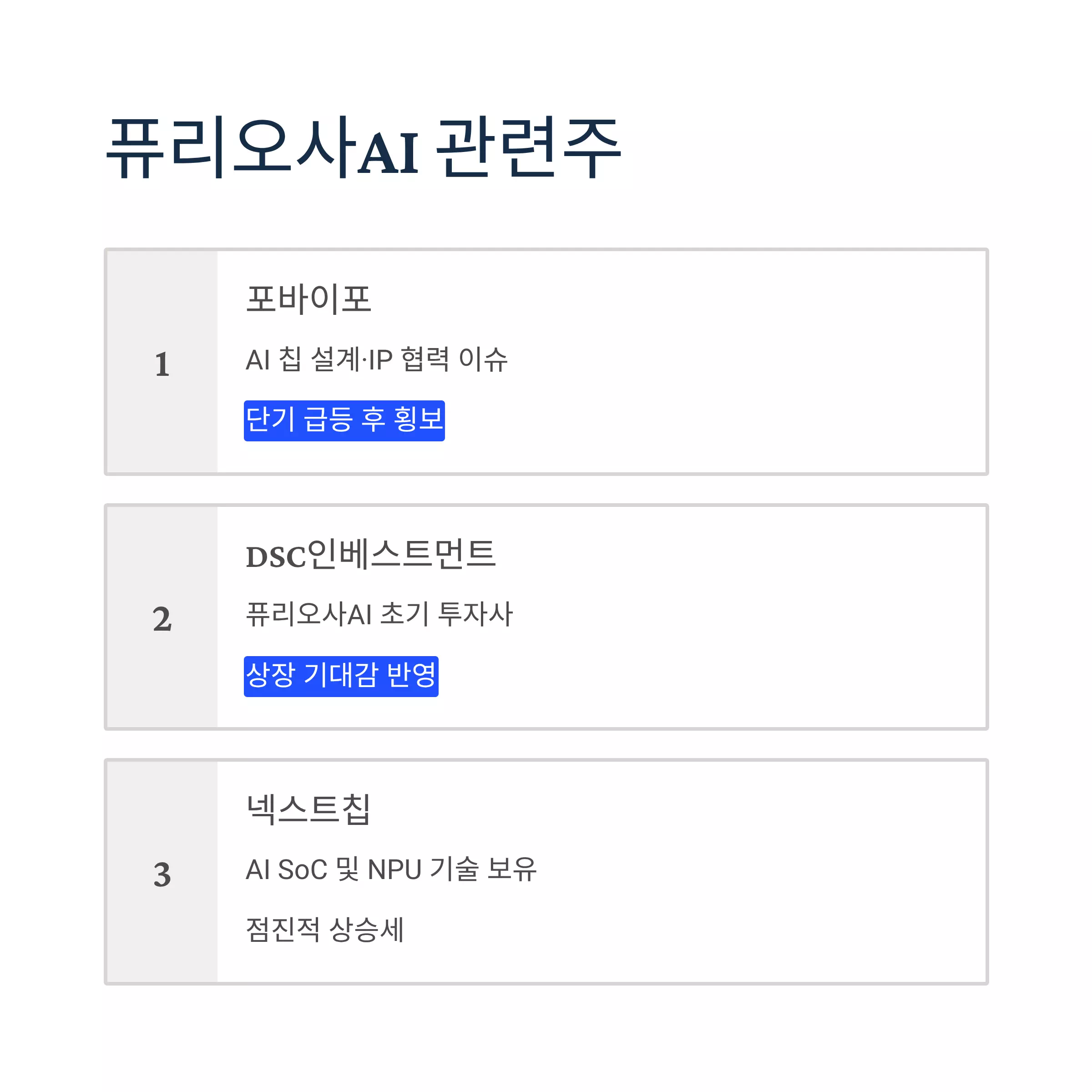 | 포바이포 | AI 칩 설계·IP 협력 이슈 | 단기 급등 후 횡보 |