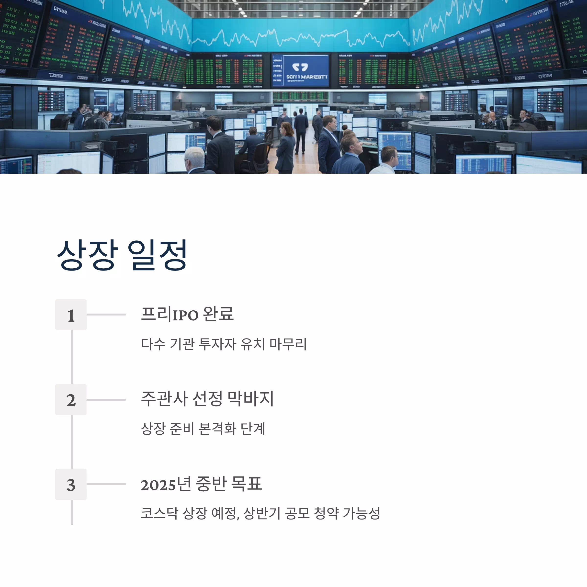 업계에서는 퓨리오사AI가 2025년 중반 코스닥 상장을 목표로 준비 중인 것으로 보고 있습니다. 이미 프리IPO 단계를 마치고 다수의 기관 투자자 유치를 마무리했으며, 상장 주관사 선정도 막바지 단계에 있습니다. 상반기 중 공모 청약 공고가 발표될 가능성도 있습니다.
