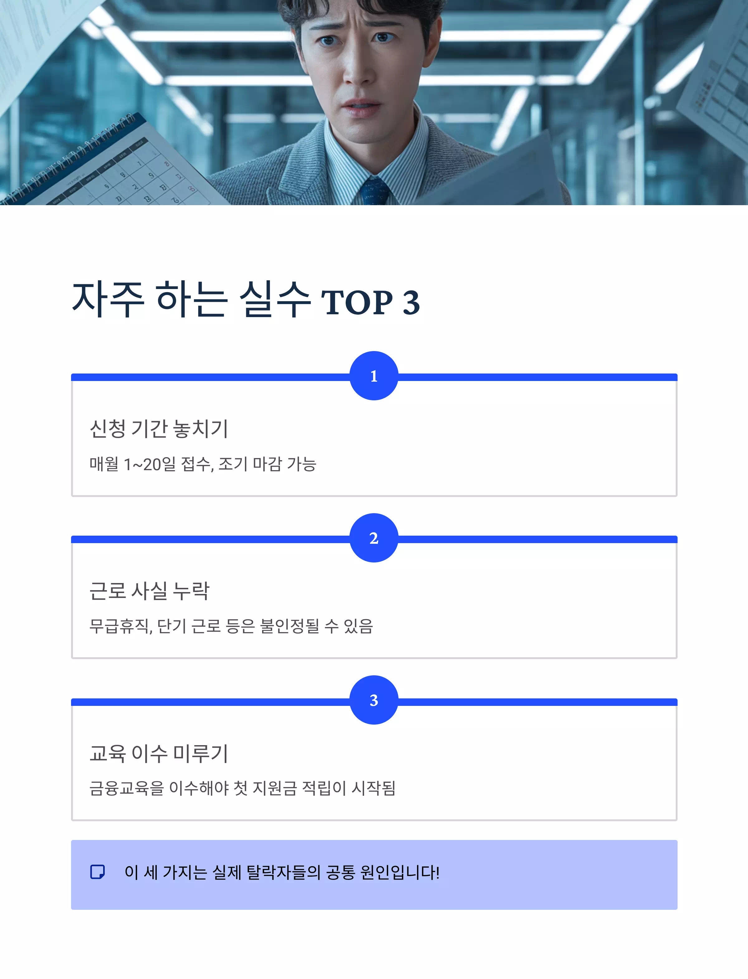 - 교육 이수 미루기 — 금융교육을 이수해야 첫 지원금 적립이 시작됨
