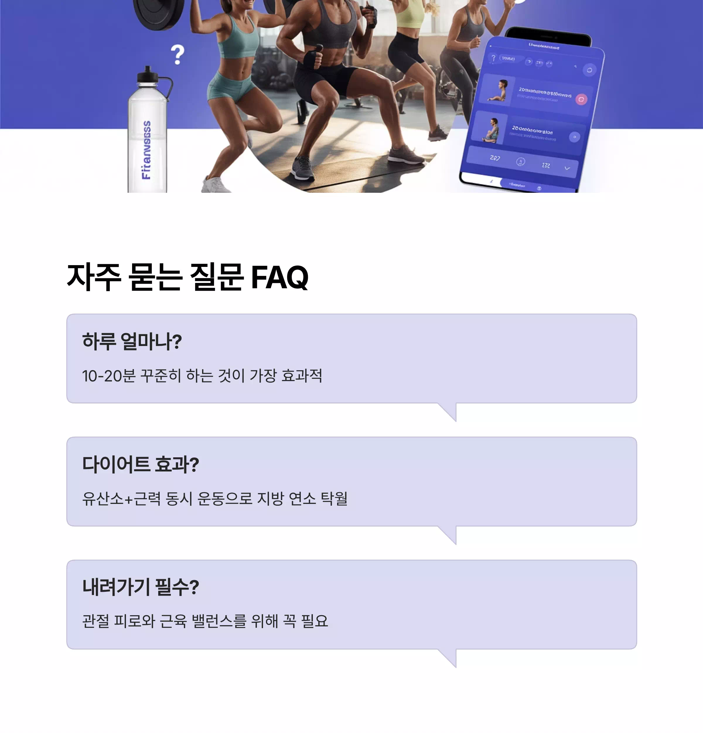 → 유산소와 근력운동이 동시에 되어 지방 연소에 매우 효과적입니다. - Q. 내려가기 안 하면 안 되나요?