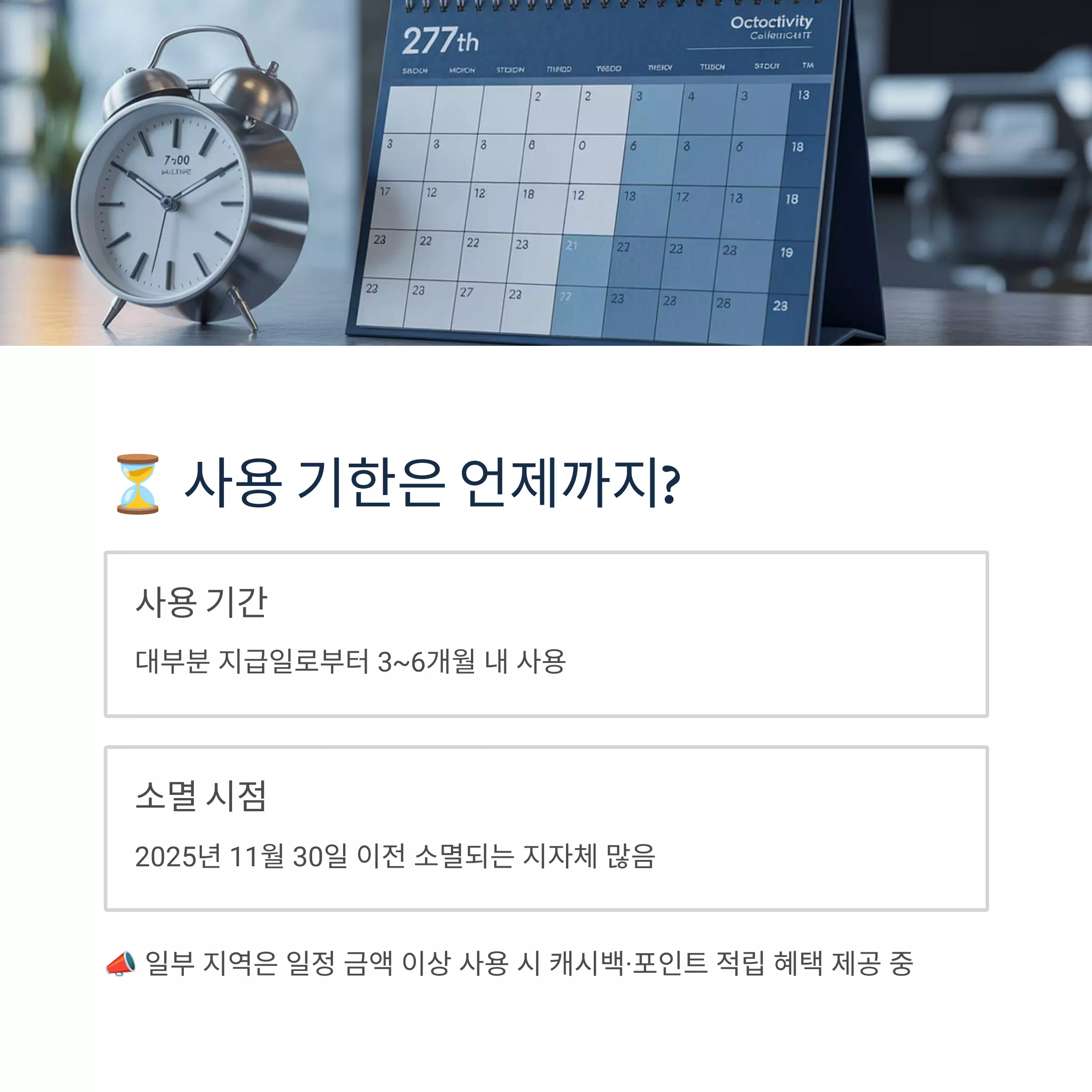 | 🕐 유효기간 | 보통 지급일로부터 3~6개월 (예: ~2025.11.30) |