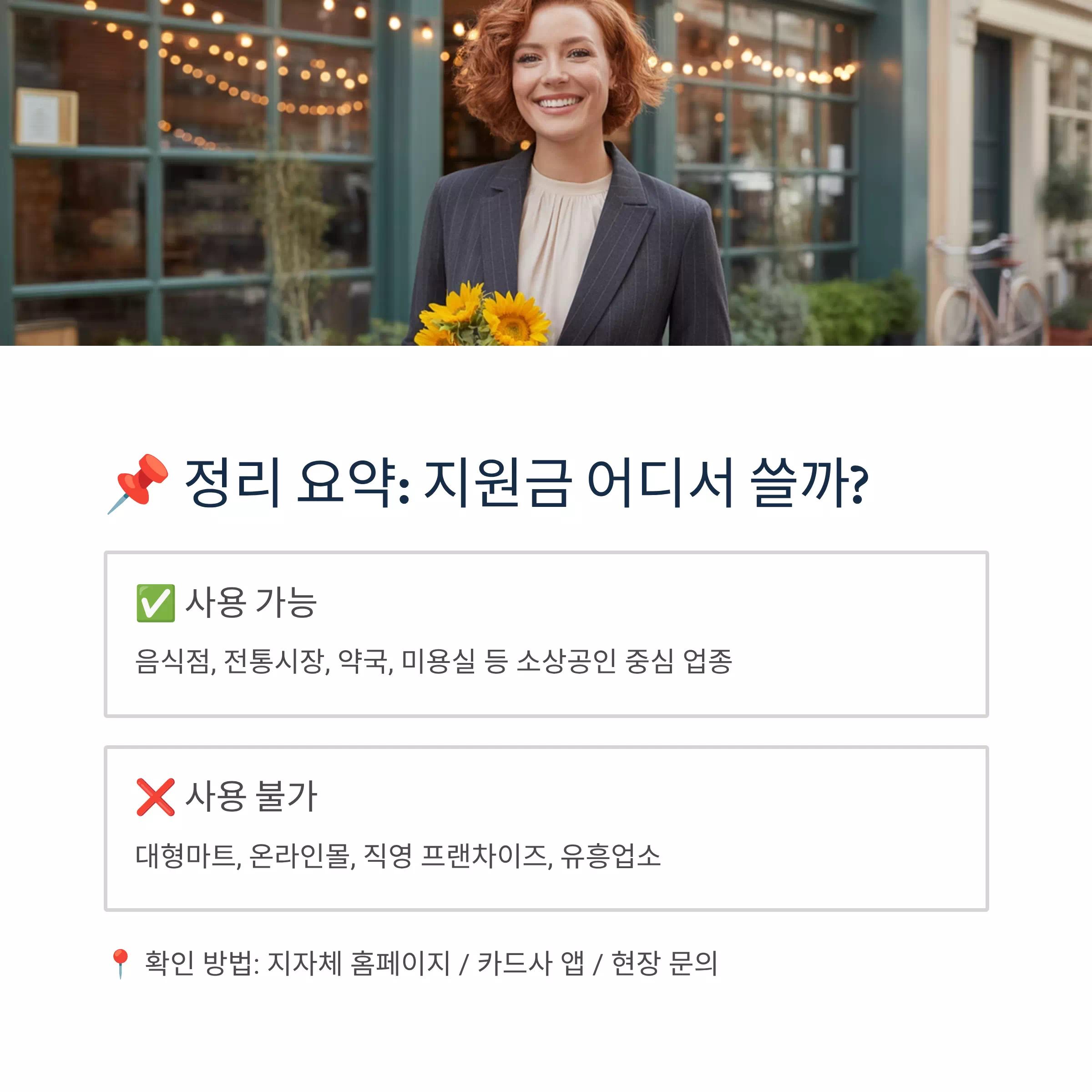 | ✅ 사용 가능 | 음식점, 전통시장, 약국, 미용실 등 소상공인 중심 업종 |