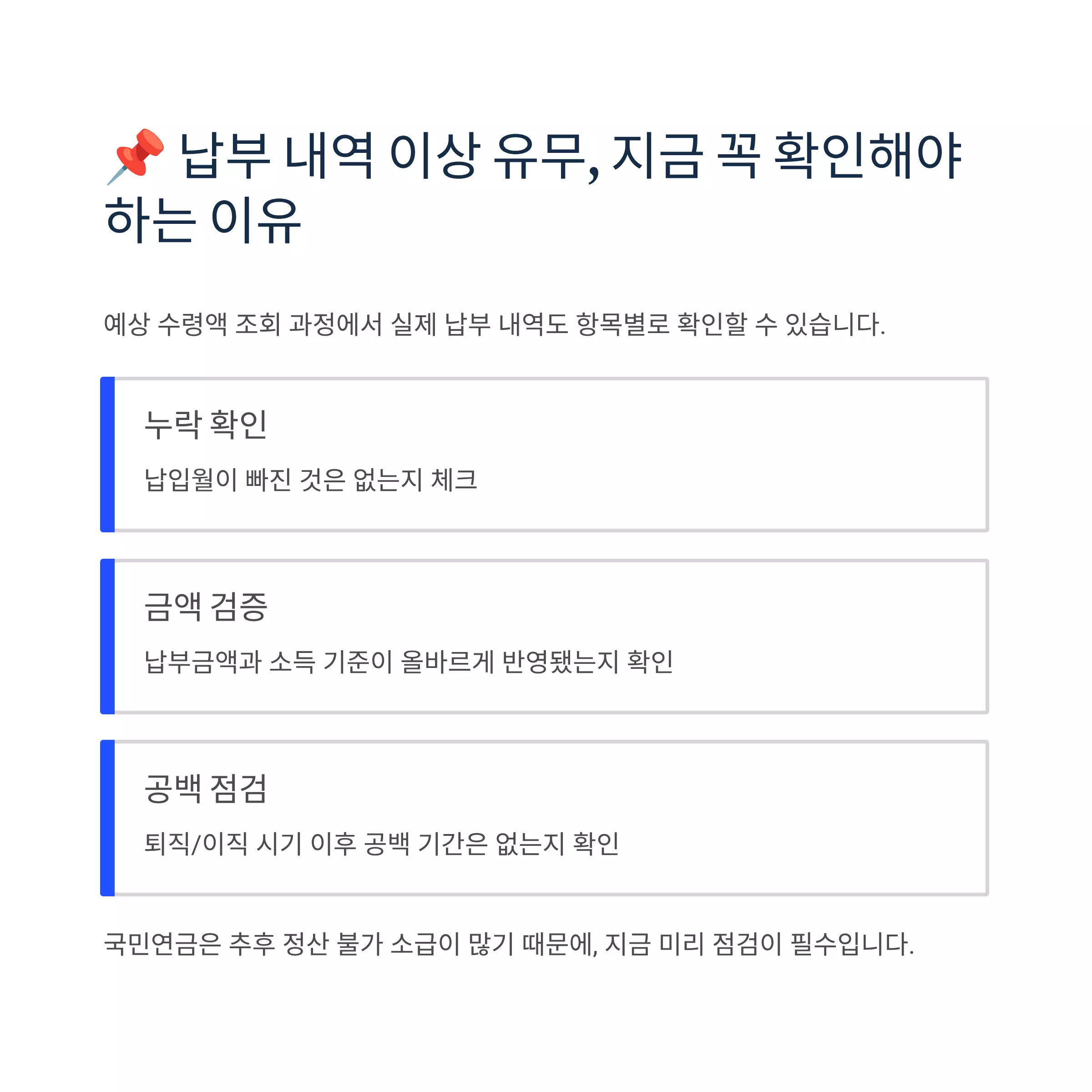 📌 국민연금은 추후 정산 불가 소급이 많기 때문에, 지금 미리 점검이 필수입니다.