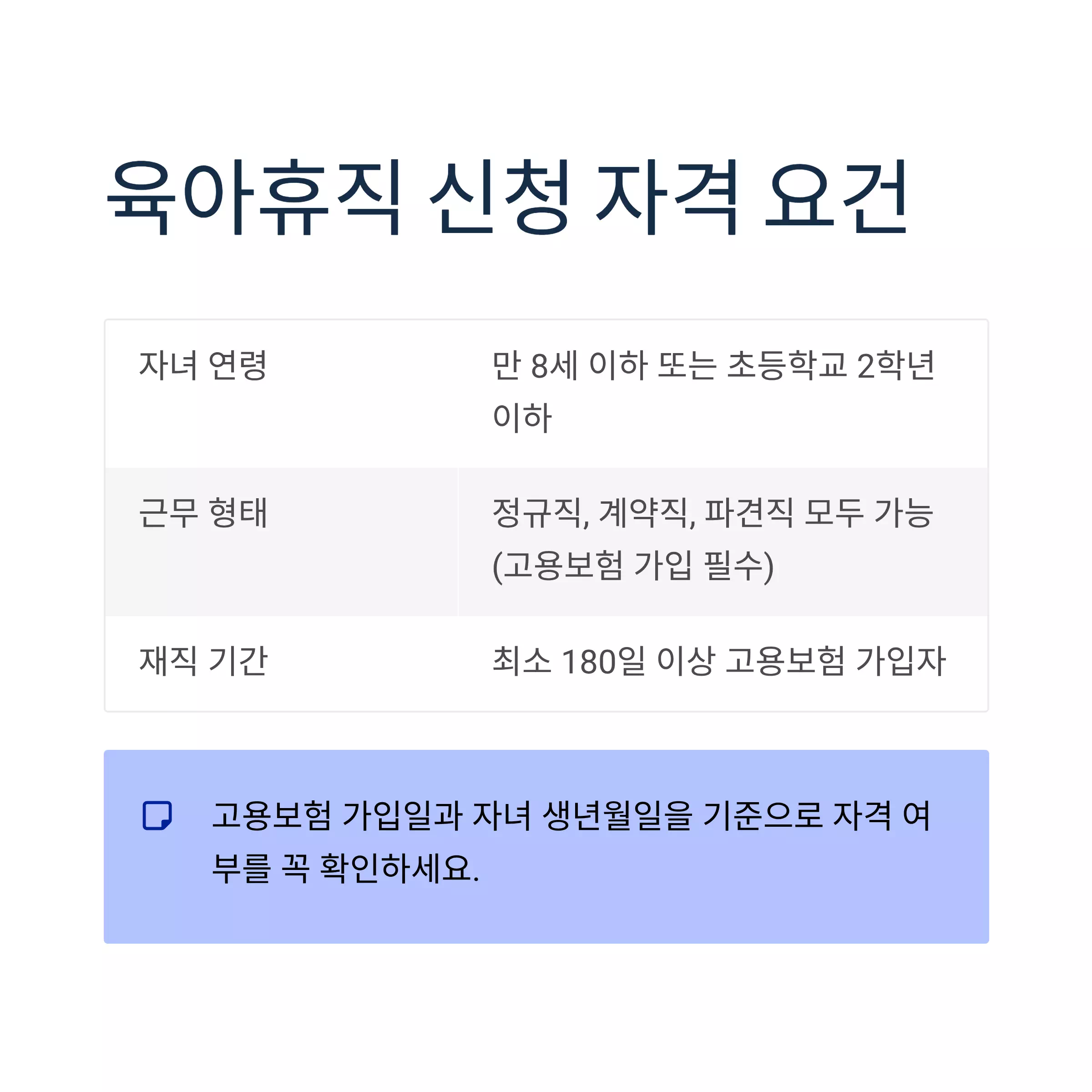 ✔ 고용보험 가입일과 자녀 생년월일을 기준으로 자격 여부를 꼭 확인하세요.