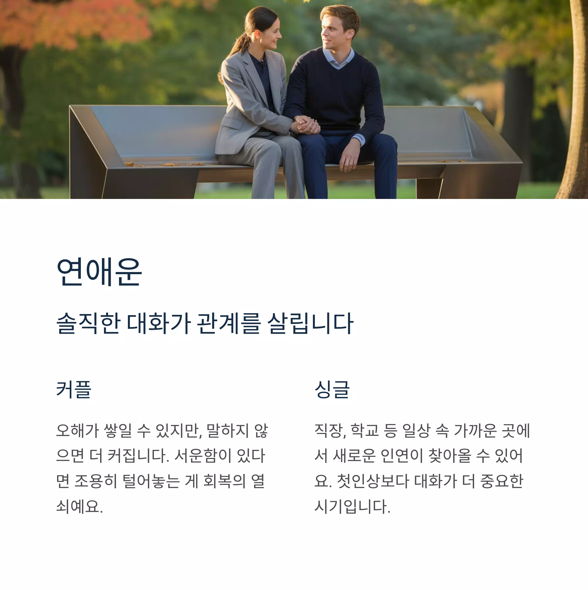 | 연애운 | 의사소통 중요 | 솔직함이 해답 |