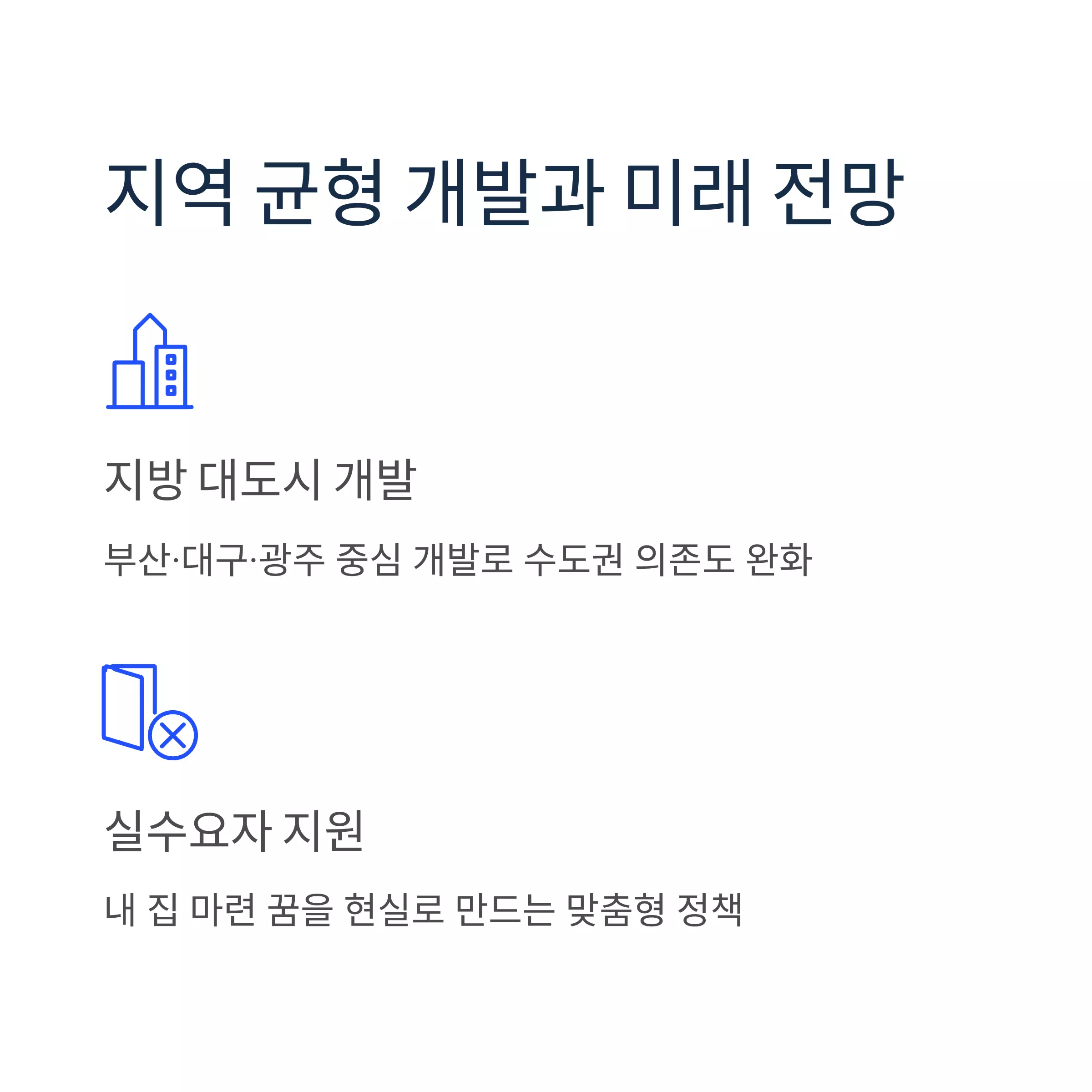 | 지역 균형 | 지방 대도시 개발 확대, 수도권 의존 완화 |