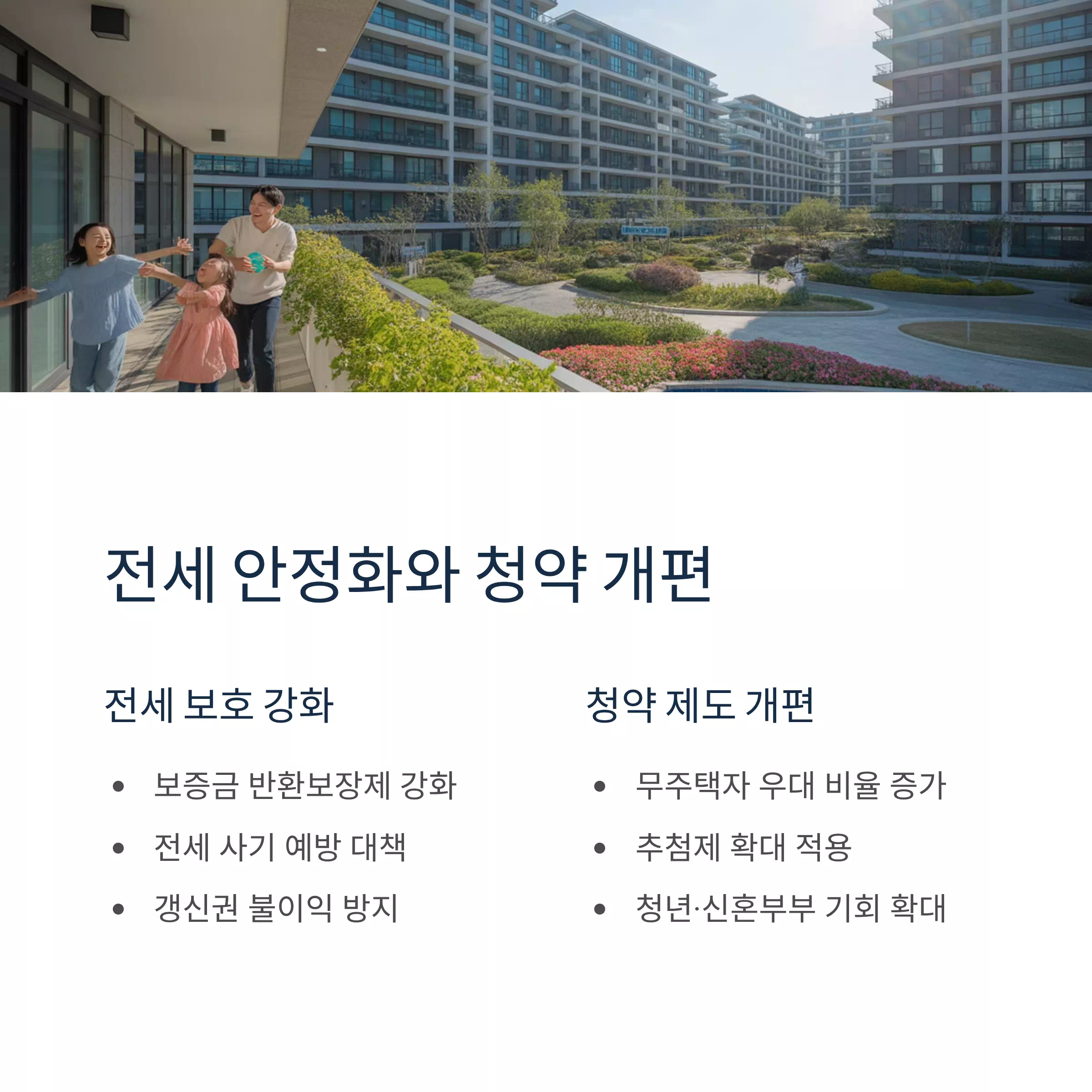 | 청약 개편 | 무주택자 우대, 추첨제 확대, 가점제 구조 개선 |