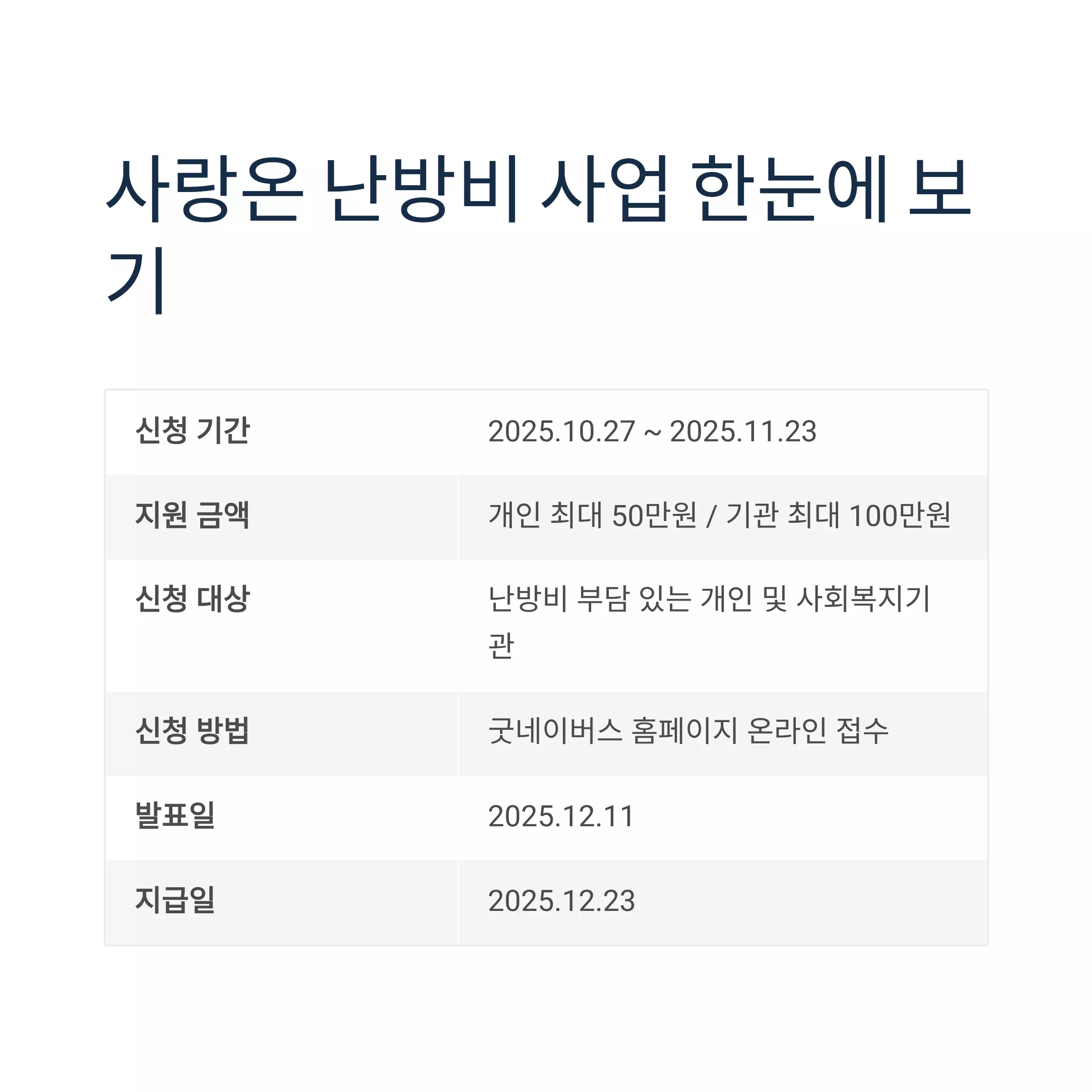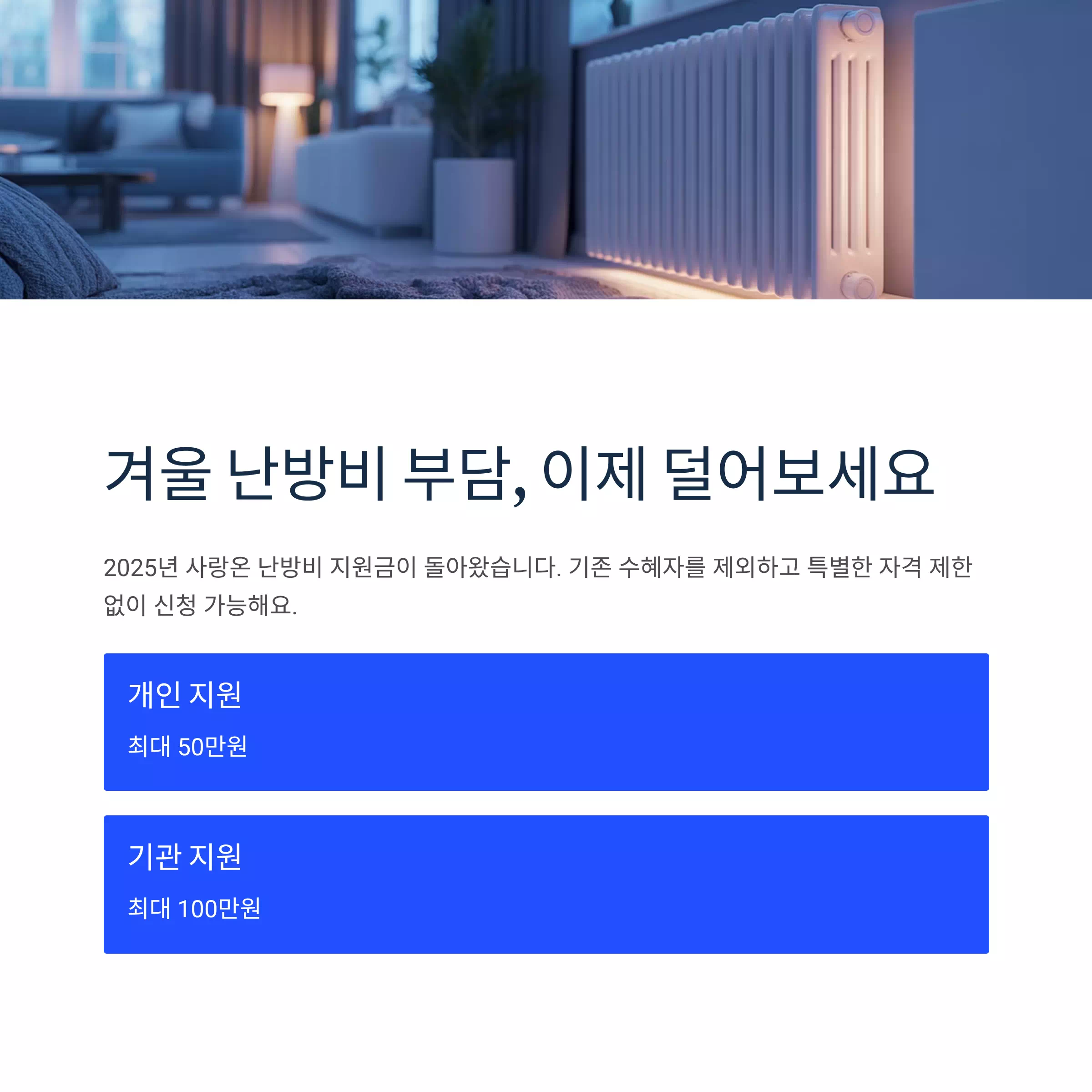2025 사랑온 난방비 지원금, 50만원으로 따뜻한 겨울 준비하세요 본문