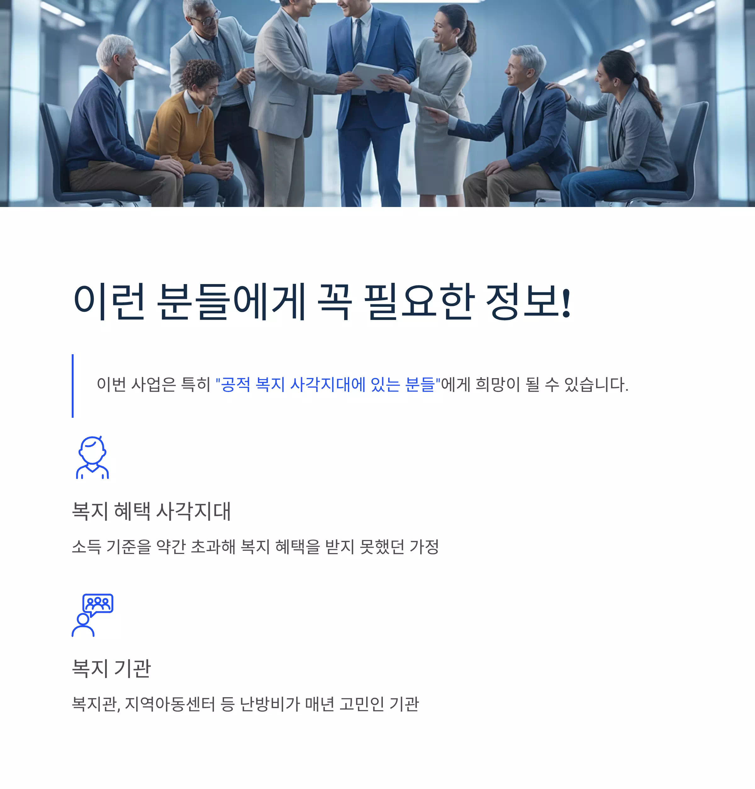 이번 사업은 특히 “공적 복지 사각지대에 있는 분들”에게 희망이 될 수 있습니다.