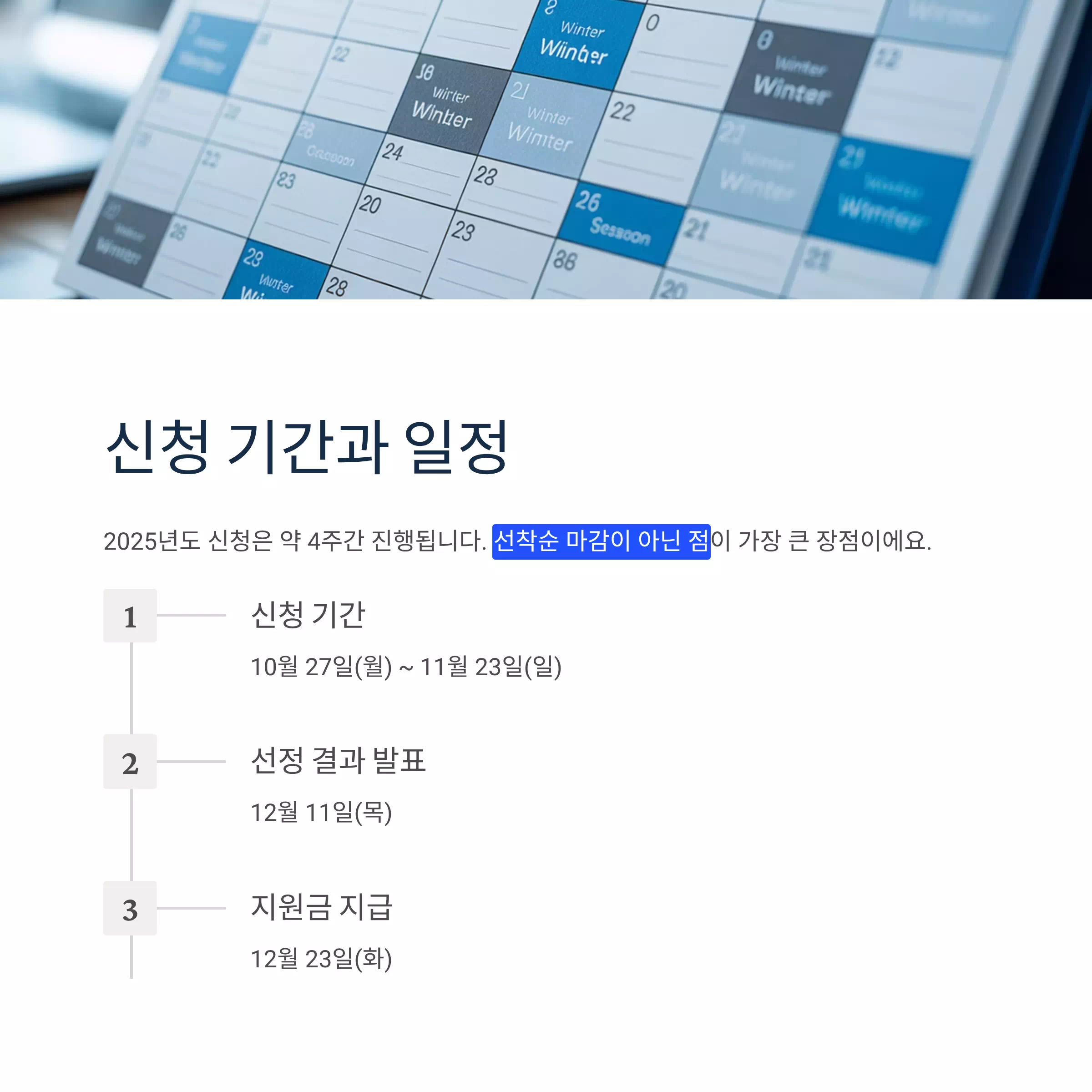2025년도 신청은 10월 27일(월)부터 11월 23일(일)까지 약 4주간 진행됩니다.