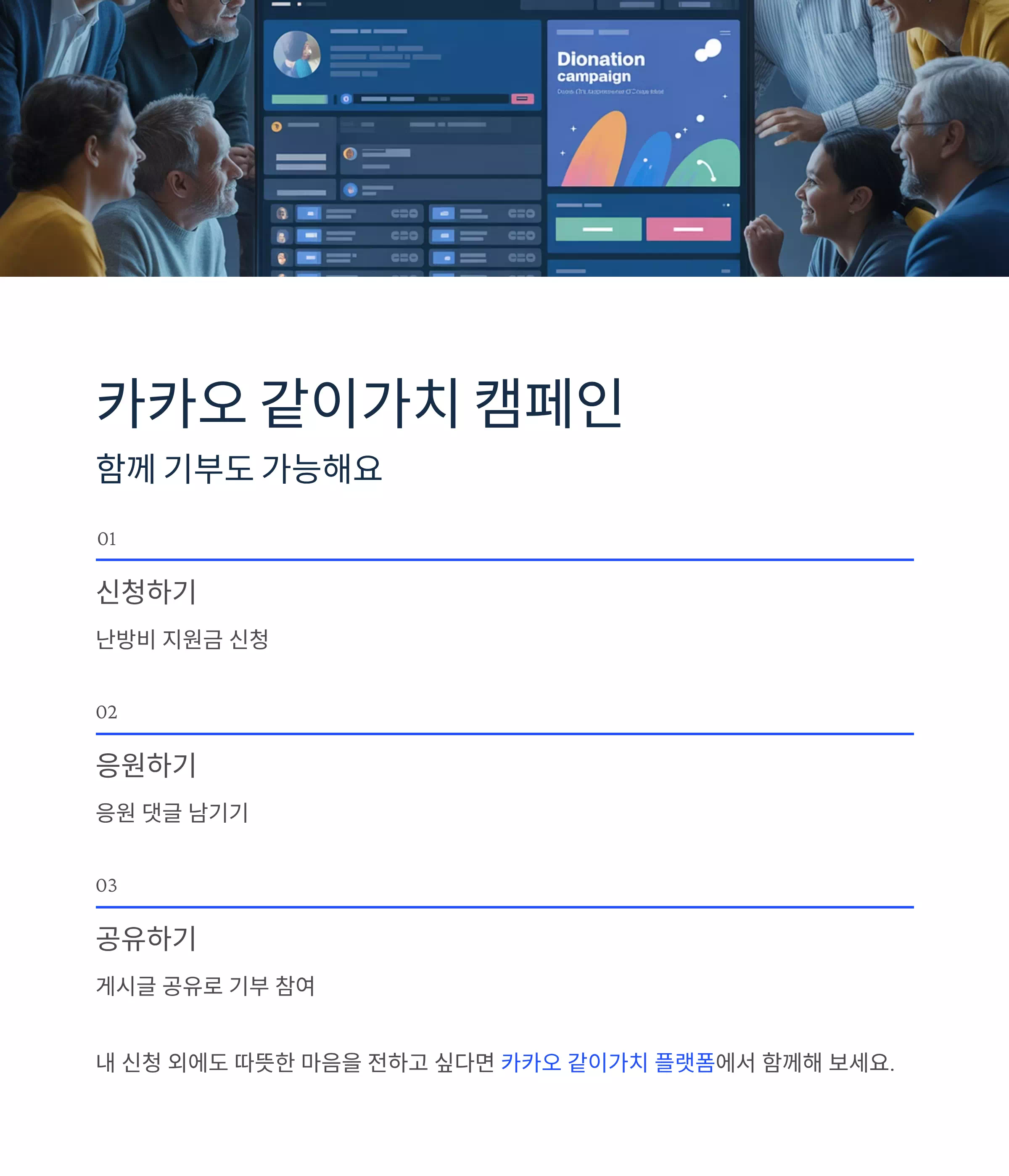카카오 같이가치 캠페인으로 함께 기부도 가능해요