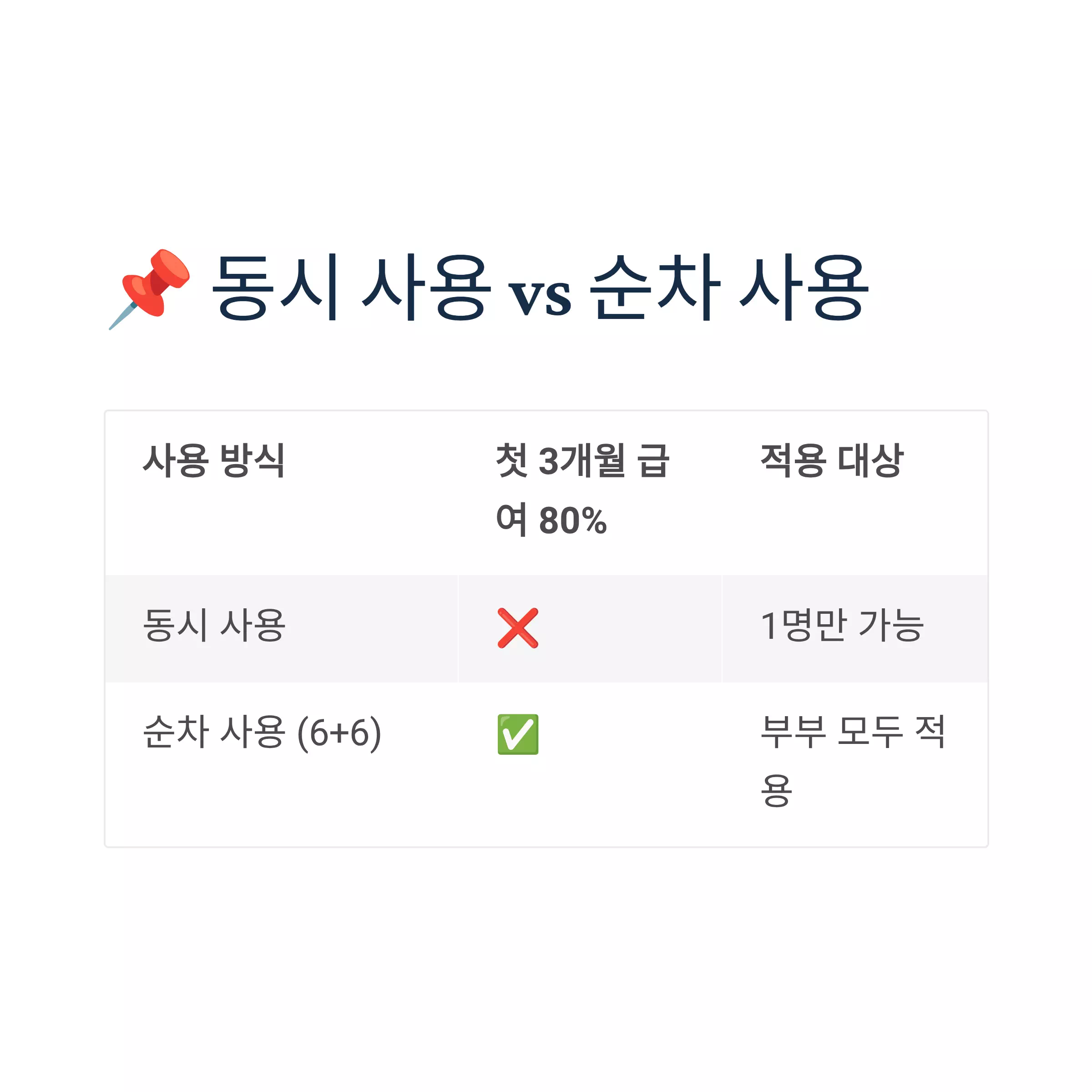 하지만 급여 80% 수령 혜택은 순차 사용 시에만 양쪽 모두 적용됩니다.