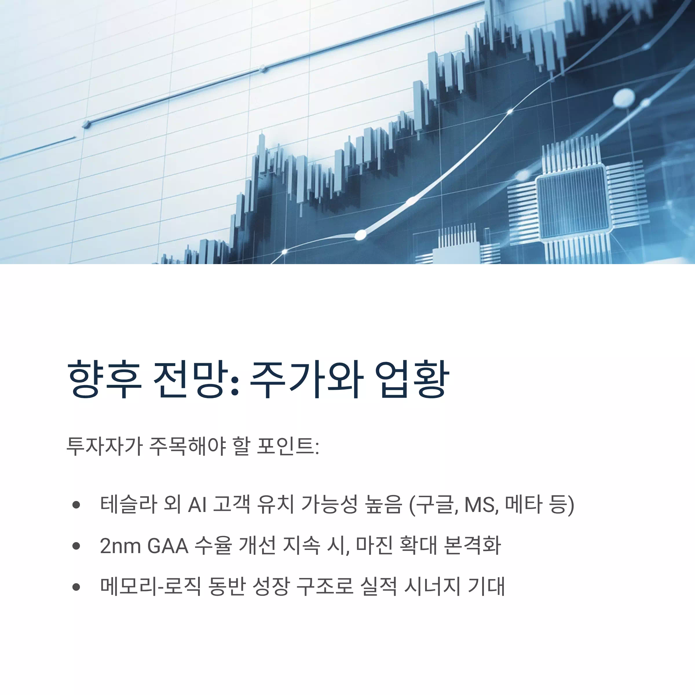 | HBM·AI칩 연계 | 메모리-로직 동반 성장 구조로 실적 시너지 기대 |