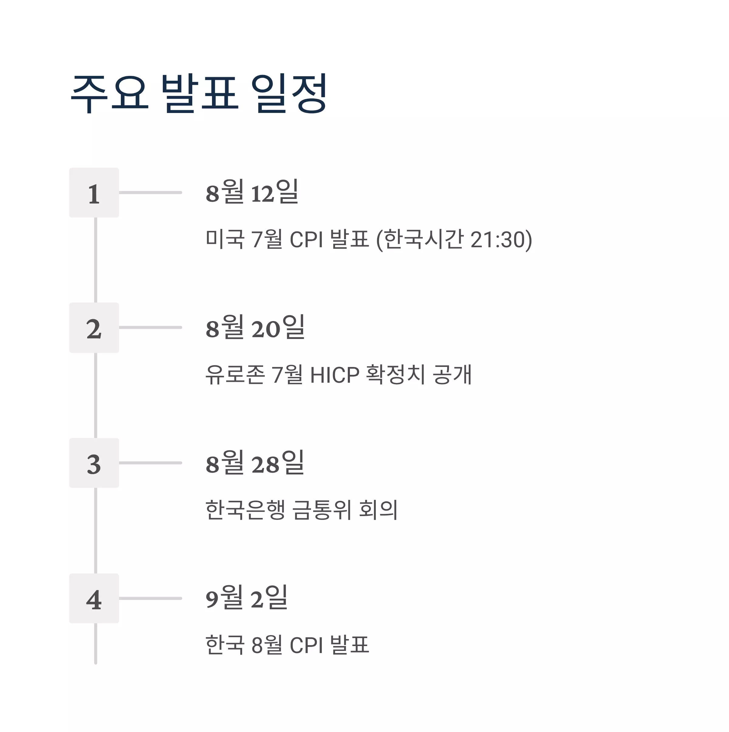 | 8월 CPI 발표 | 9/2(화) 예정 |