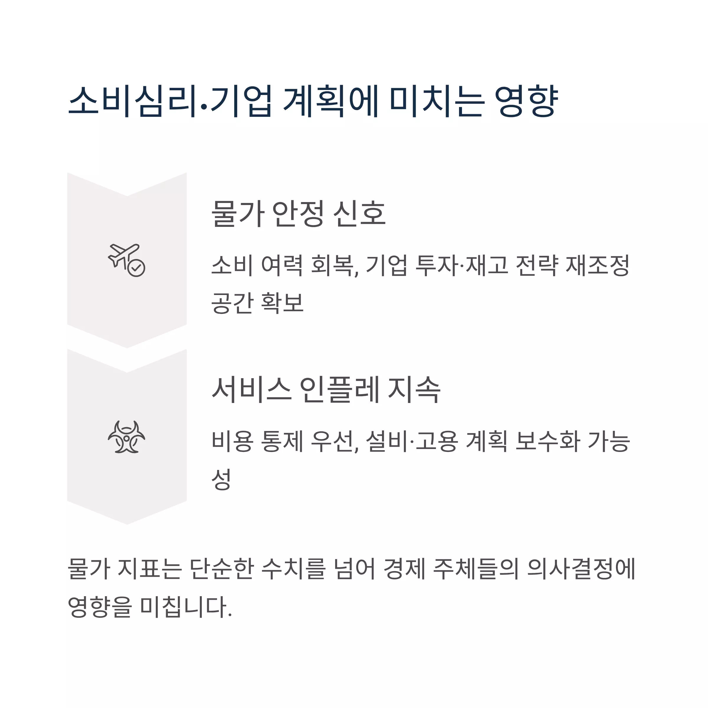 물가 안정 신호가 강화되면 소비 여력이 회복되고, 기업은 투자·재고 전략을 재조정할 공간을 확보합니다. 반대로 끈적한 서비스 인플레가 재확인되면 비용 통제가 우선되며 설비·고용 계획은 보수화될 수 있습니다.