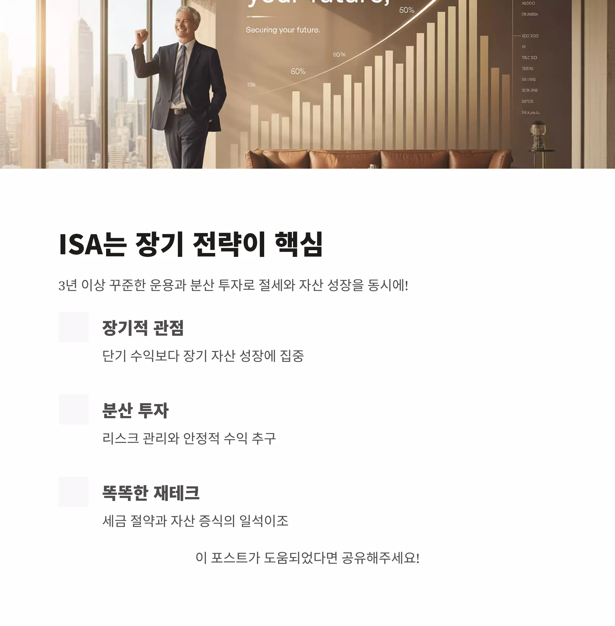 ISA는 단기 수익보다는 장기적으로 절세와 자산 성장을 병행할 수 있는 도구입니다.