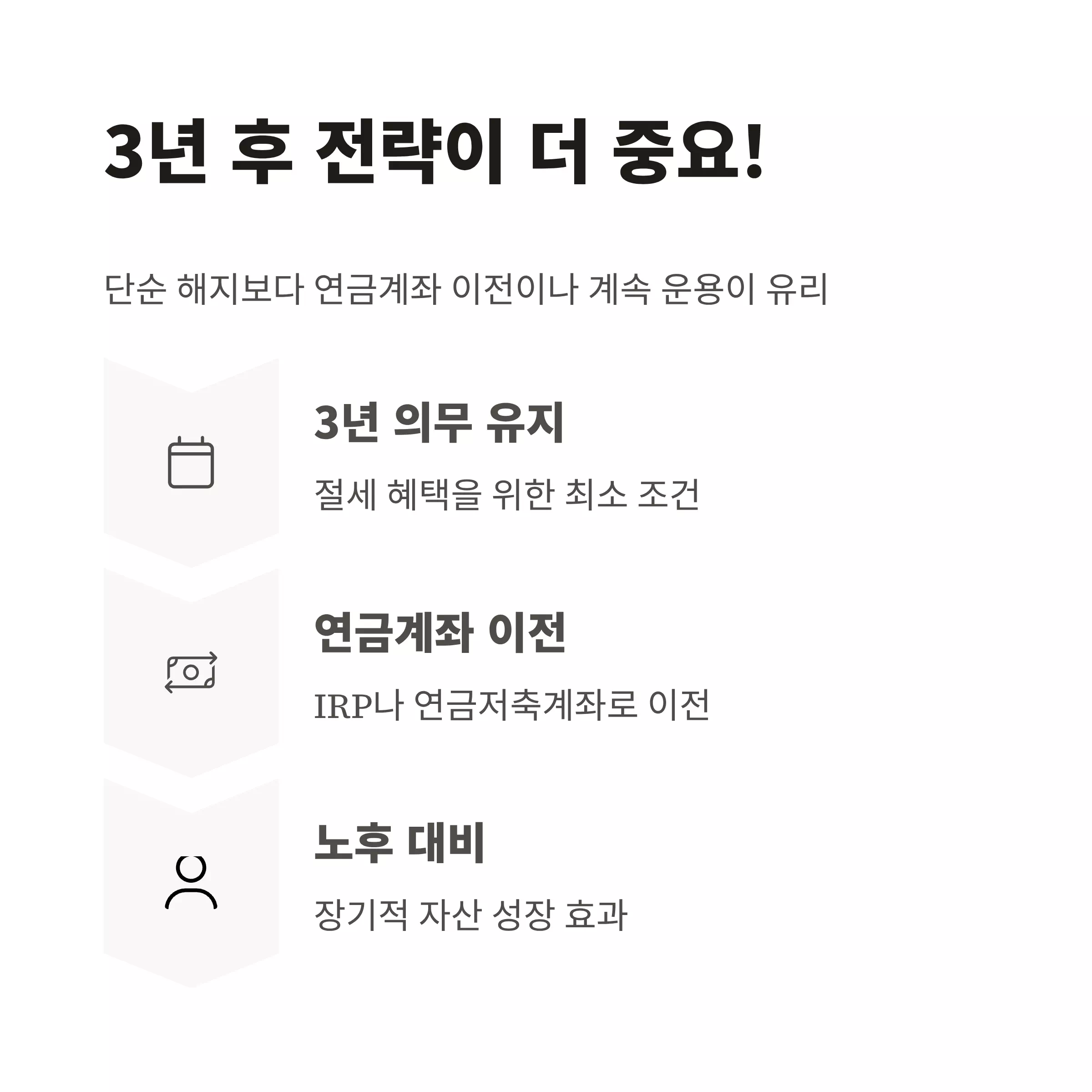 3년 후에는 단순 해지보다, 연금계좌로 이전하거나 계속 운용하는 방식이 더 유리할 수 있어요.