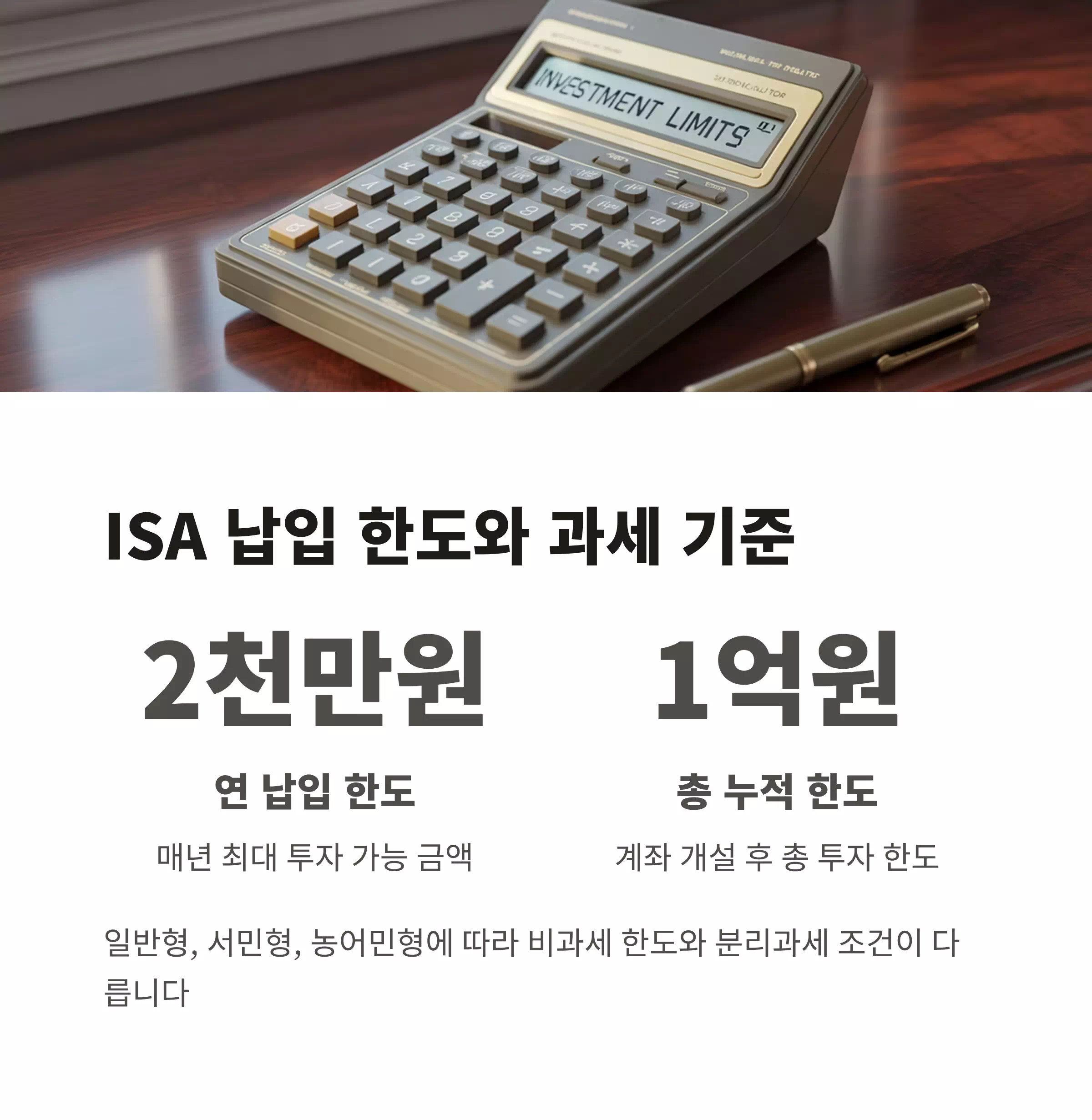 - 계좌 납입 한도 제한 (연 2천만 원, 총 1억 원)